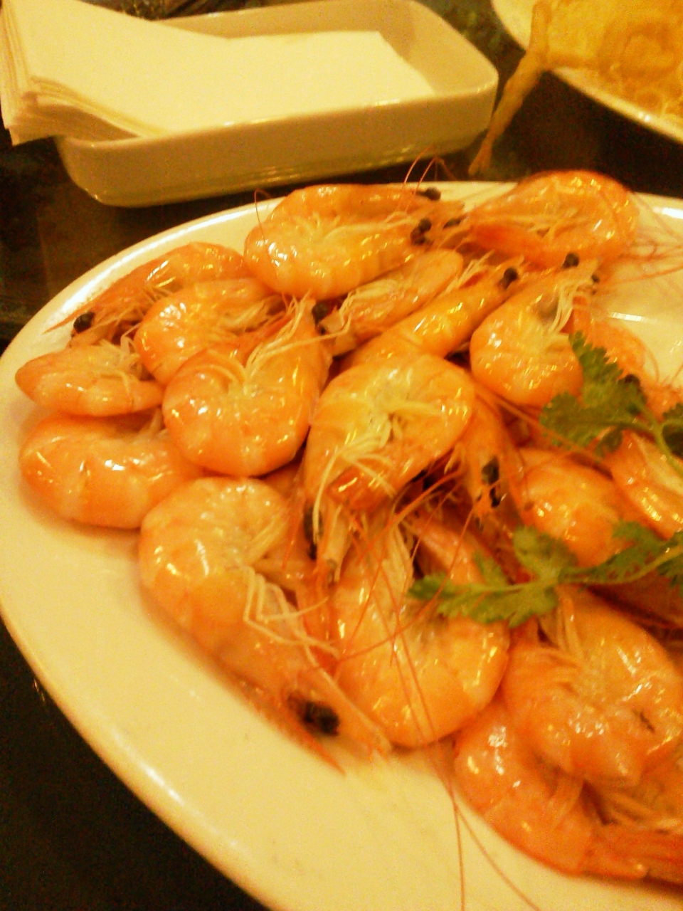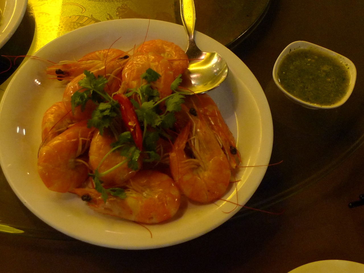 これも看板料理のひとつ、生きた海老を茹でているらしい。