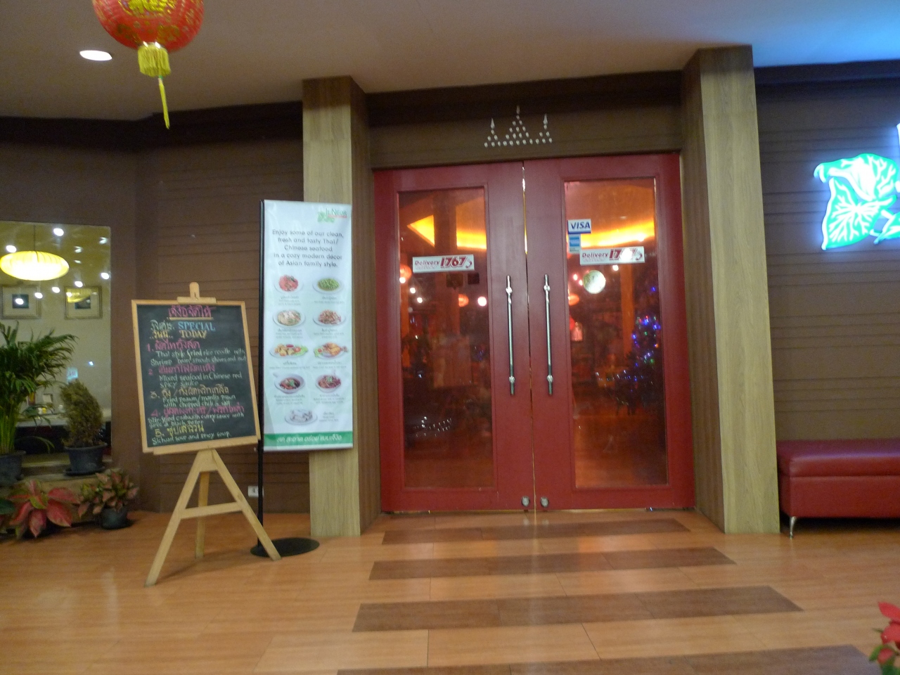 ランチタイムはクイッテイオ(タイやきそば)・カウパット(チャーハン)・トムヤクスープ入り麺等全品60Bらしくランチではお値打ち店だと思う。店員そしてマネージャの対応は親切であった。