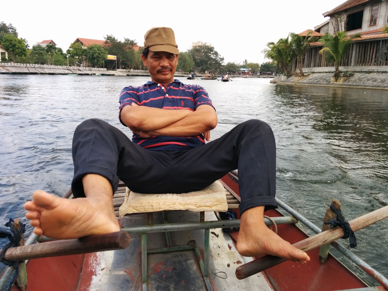 足で小舟を漕ぐベトナム船頭さん