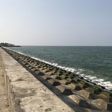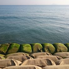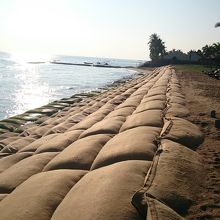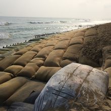 土嚢?のようなものがたくさん置かれていて、そこを通り海に入る感じでした。