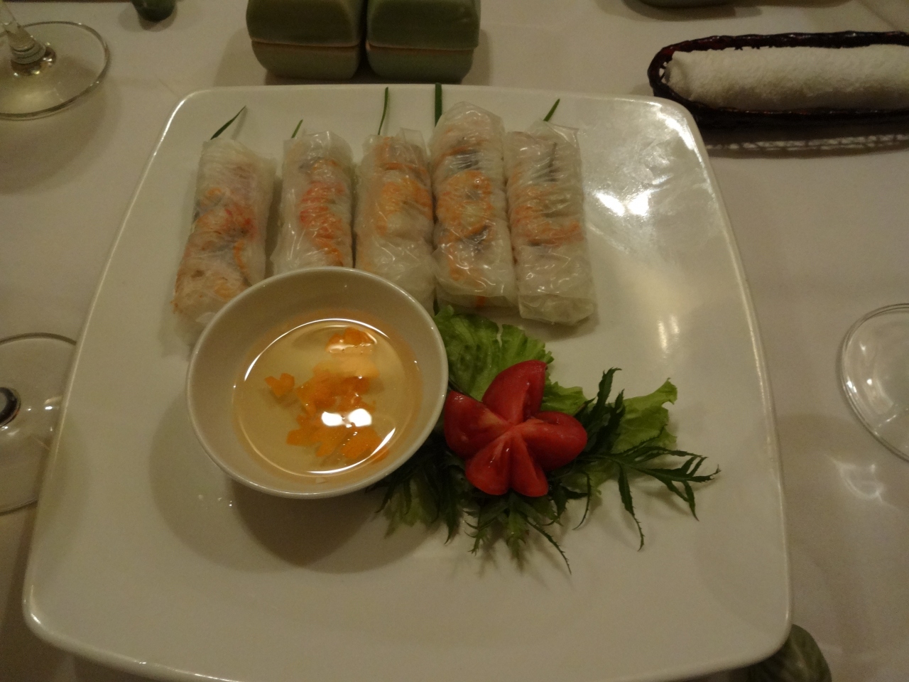 お料理はアラカルトもありましたが、よくわからないのでコースでいただくことにしました。一皿一皿きれいに盛り付けられ、しかも何を食べても美味しい。全体的にベトナム料理は日本人の口に合うのかもしれません・・