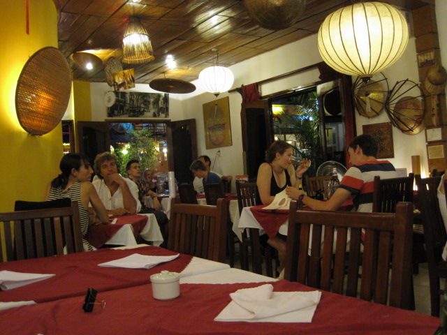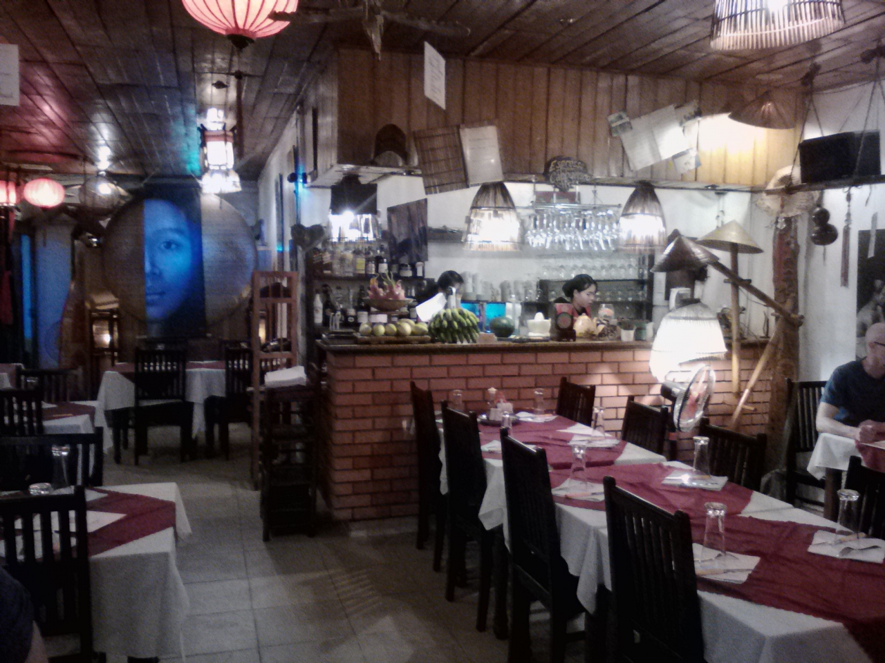 トリップアドバイザーの評価を見て行ってみました。8時過ぎに行ったら、比較的狭い店内は満席で、空いた席に案内されました。とに... 続きを読むかく人気店のようで、テーブルといすがぎゅうぎゅうに入れてあり、その隙間に扇風機が置いてあり、インテリアはフランスらしいが、大衆食堂っぽさもある。鴨のフルーツソース(オレンジだったか?)とオニオンスープをオーダー。繊細さはないが、家庭料理としては十分いける味だった。お値段は一皿10万ドン以下のものが多かったと思う。そういうリーズナブルさ(外人向けレストランの中ではという意味)、雑然とした雰囲気、味のバランスがいいから白人受けするんでしょうね。店内のほとんどがヨーロッパ人みたいでした。 閉じる