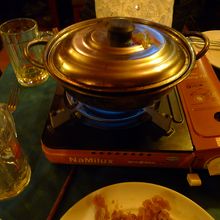 歯応えのある肉があった。牛、豚、鶏とは違う肉だと思うが、そんなに嫌な味ではなかった。それ以外は日本で食べる鍋と何も変わらず美味しかった。