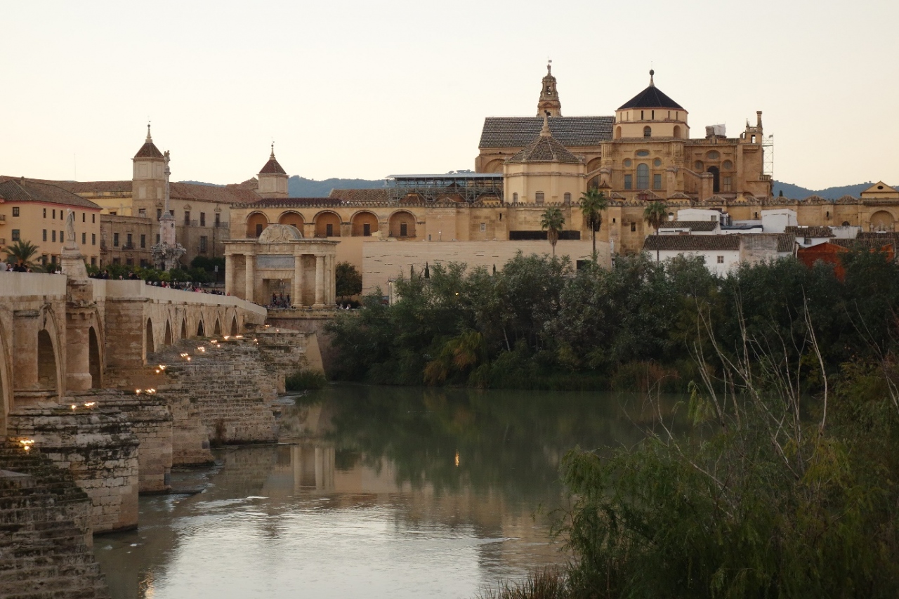 橋の上から北側を見ればメスキータ、南側にはカラオーラの塔、川の上流と下流は緑地帯と、どちらを見ても良い景色。特に川の向こうにメスキータの全景が浮かび上がる感じはイスラムっぽさがあっていいです。橋の真ん中あたりにコルドバの守護聖人である聖ラファエルの像があり、市民にとって特別な存在であることが分かります。 閉じる投稿日:2021/08/12