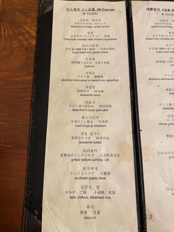 韓定食のメニュー