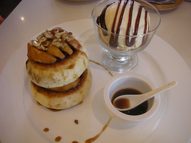 ホットックは2個重ねてあって、中にはシナモン風味の