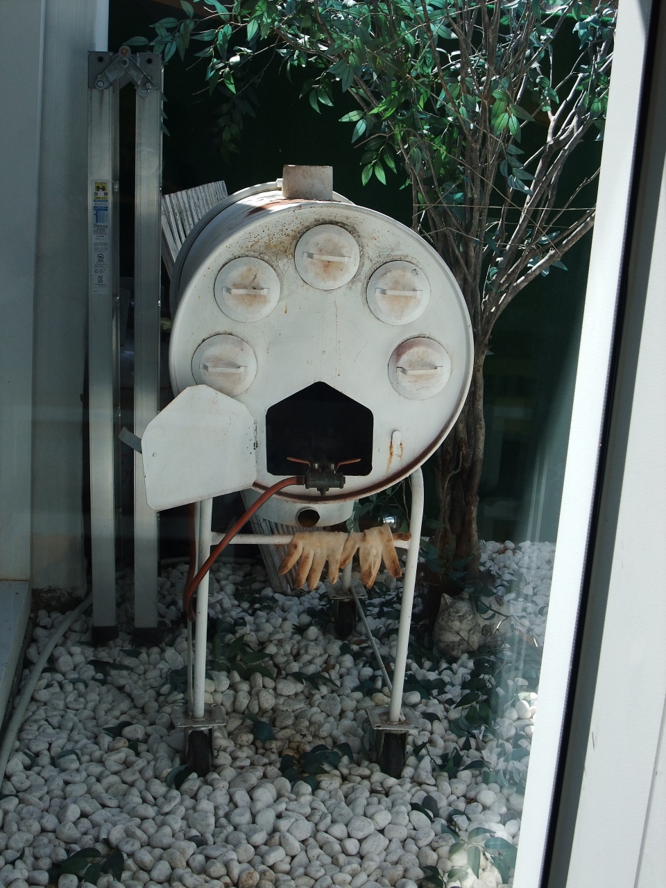振り向くと、中庭に有ったドラム缶が横になった物から 先程の店員さんが