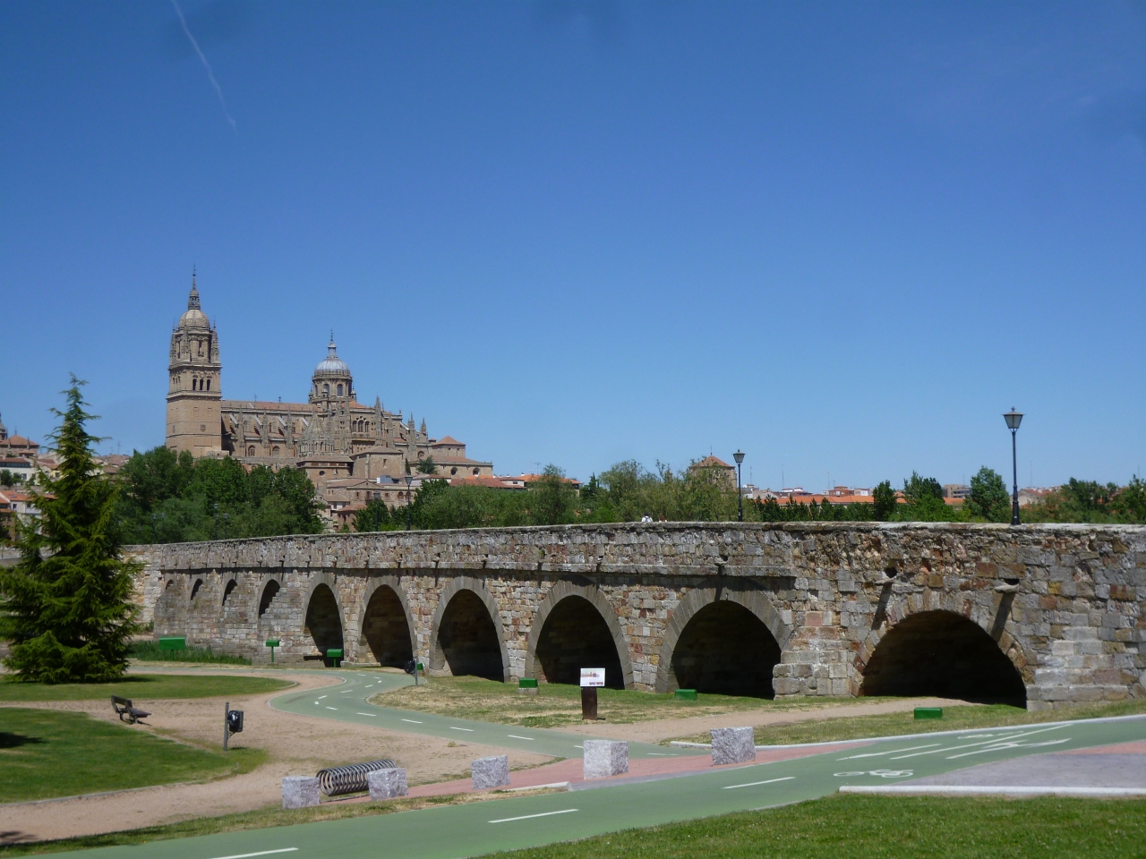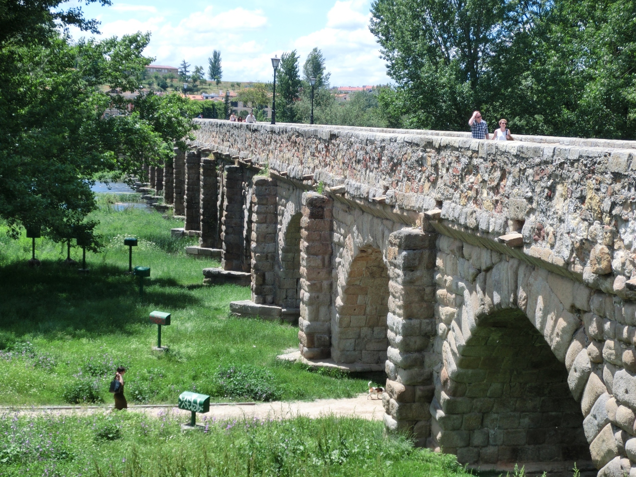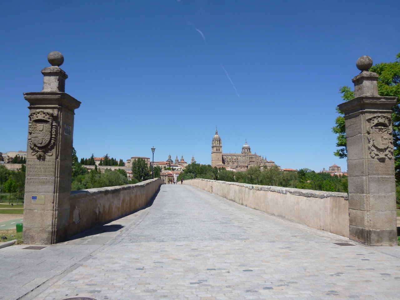 サラマンカの南側を流れるトルメス川に架かる ローマ帝国が建設した重厚な橋がローマ橋です。19世紀までは川に架かる唯一の橋... 続きを読むでした。建設から2000年経った現在も、歩行者用の橋として使われています。立派な石造りの橋げたはセゴビアの水道橋を思い起こさせ、ローマの高度な土木技術に感嘆せずにはいられません。