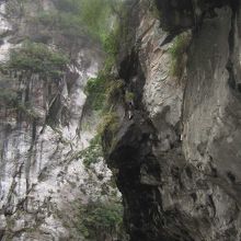 道路に迫る断崖
