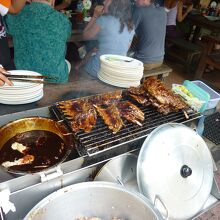 スペアリブを焼くスタッフ