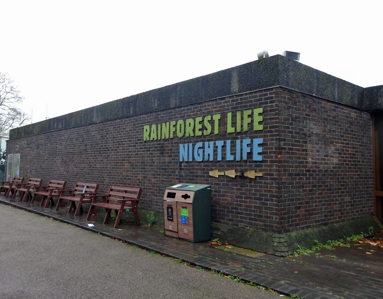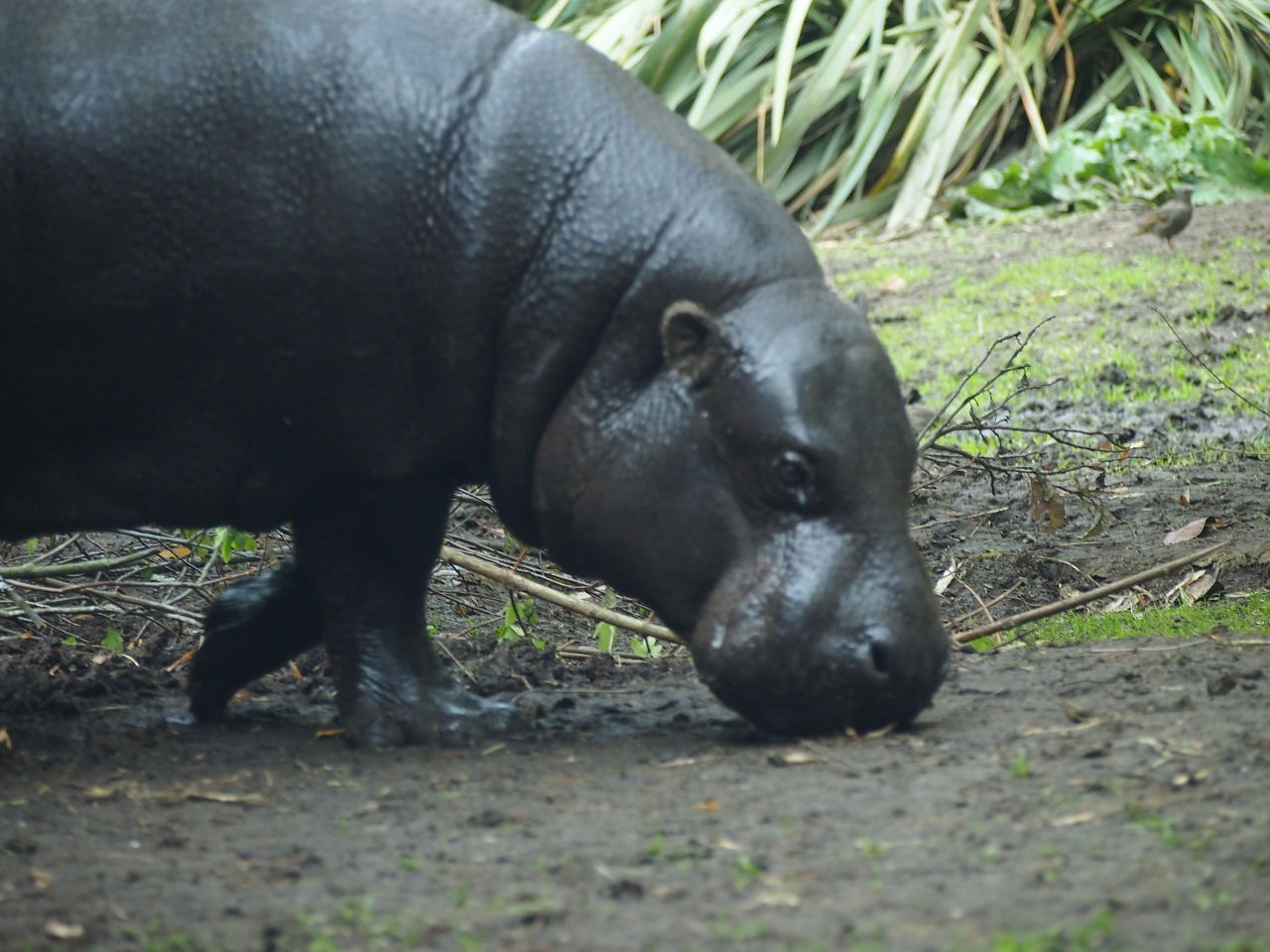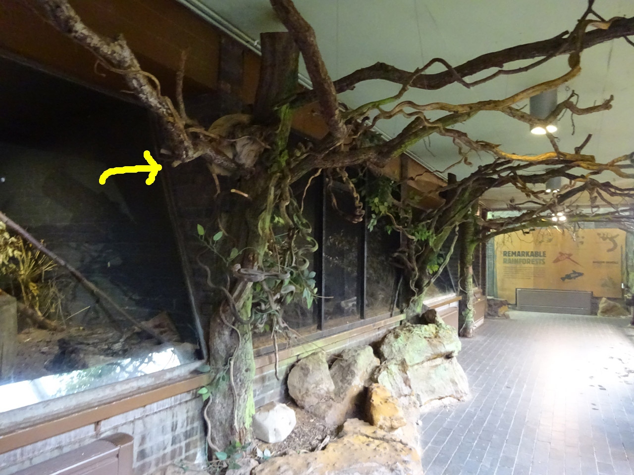 熱帯雨林展示場、通路に木が!この矢印の所に居る!