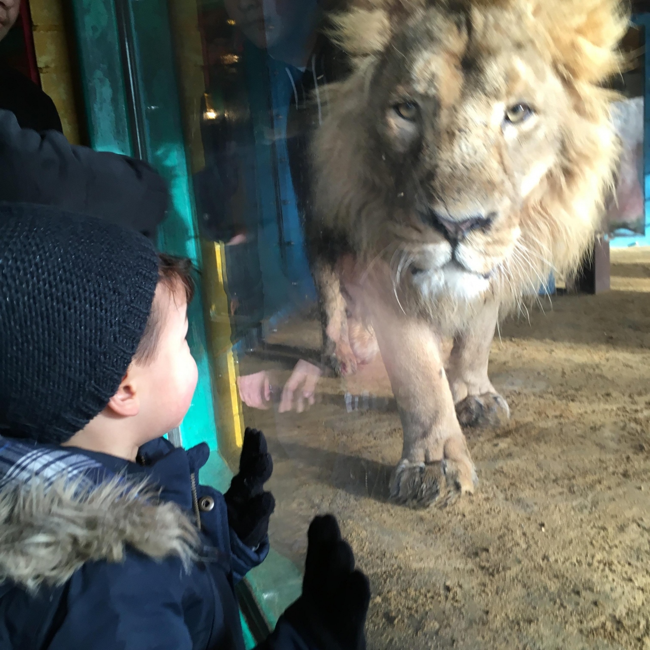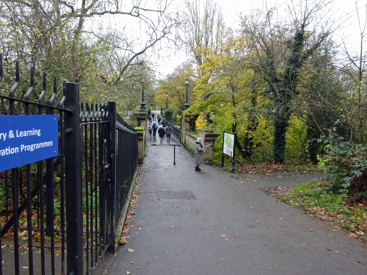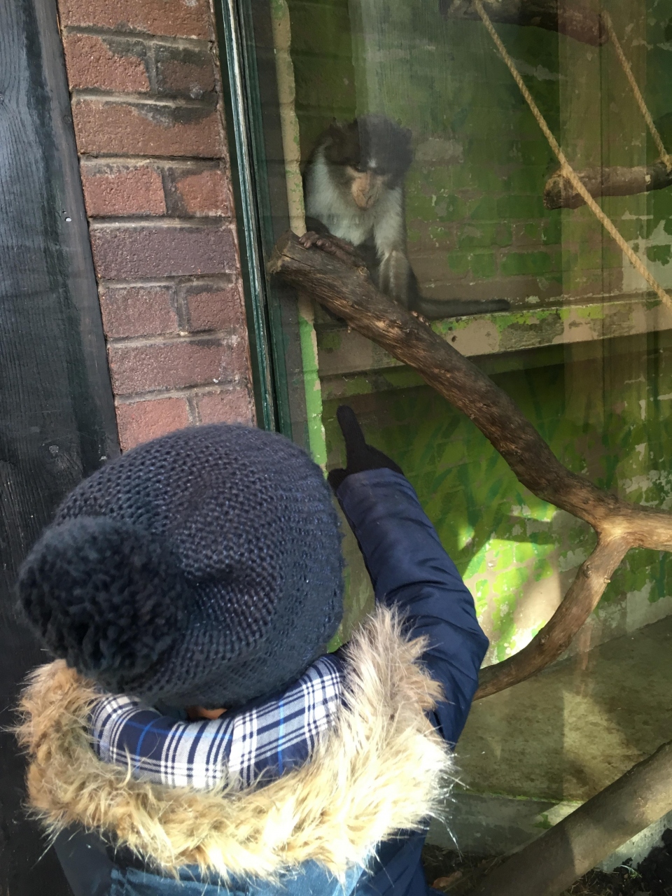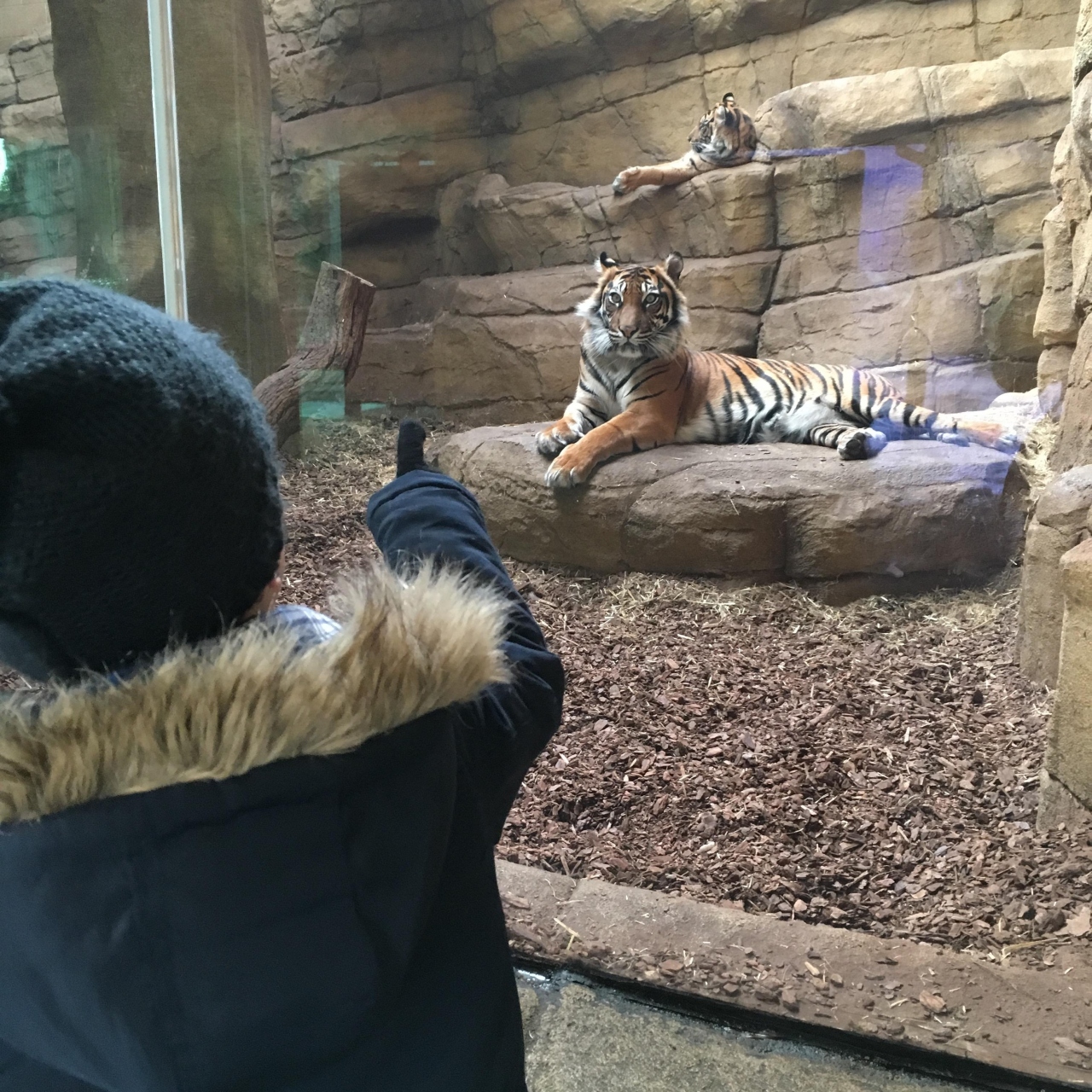 熱帯雨林展示場、通路に木が!この矢印の所に居る!