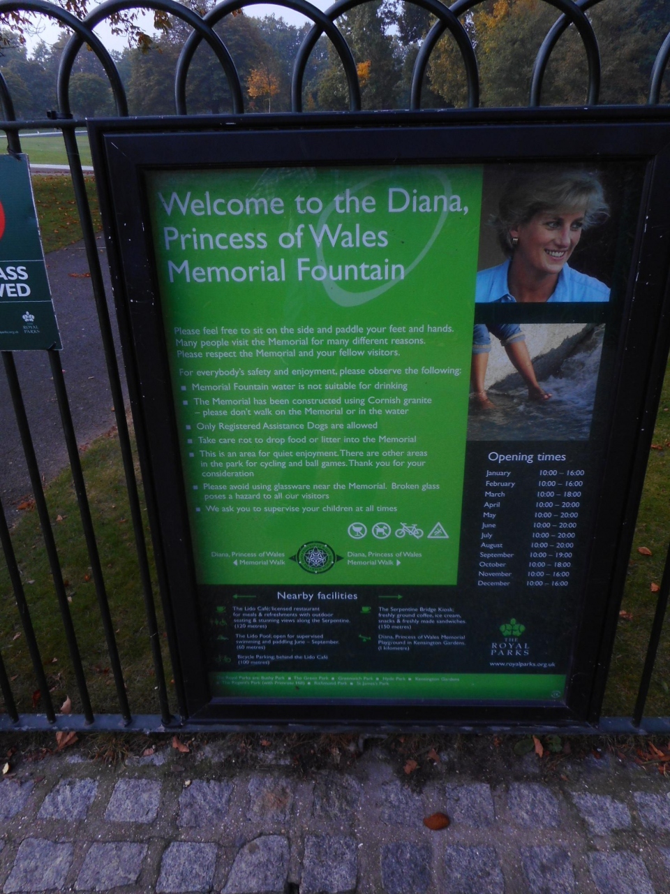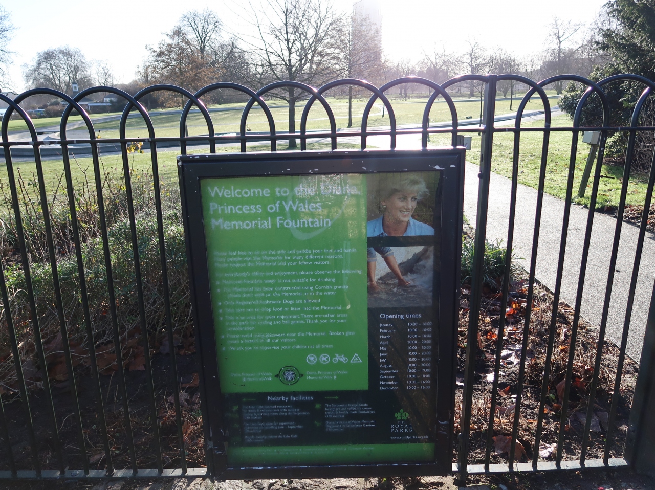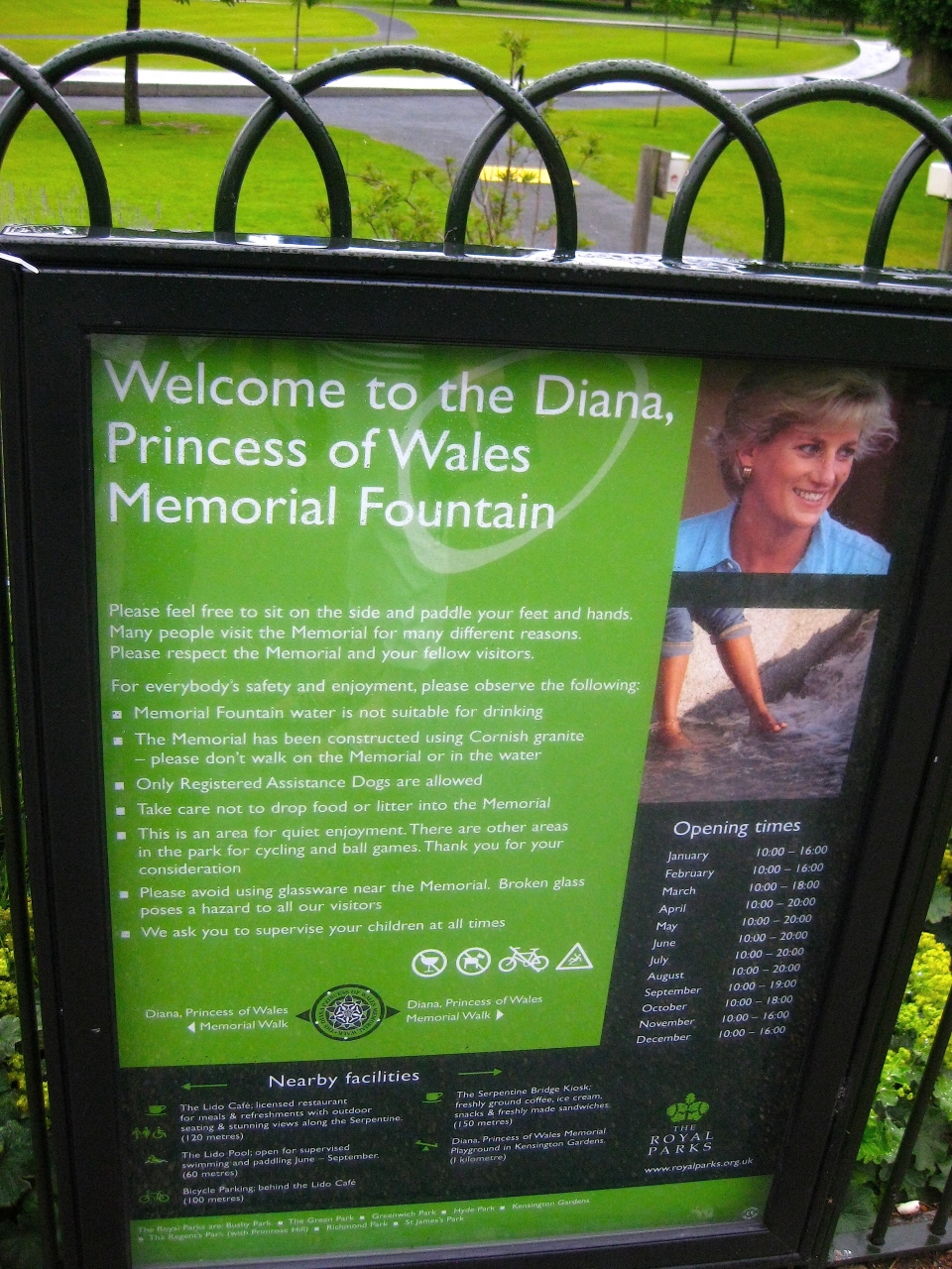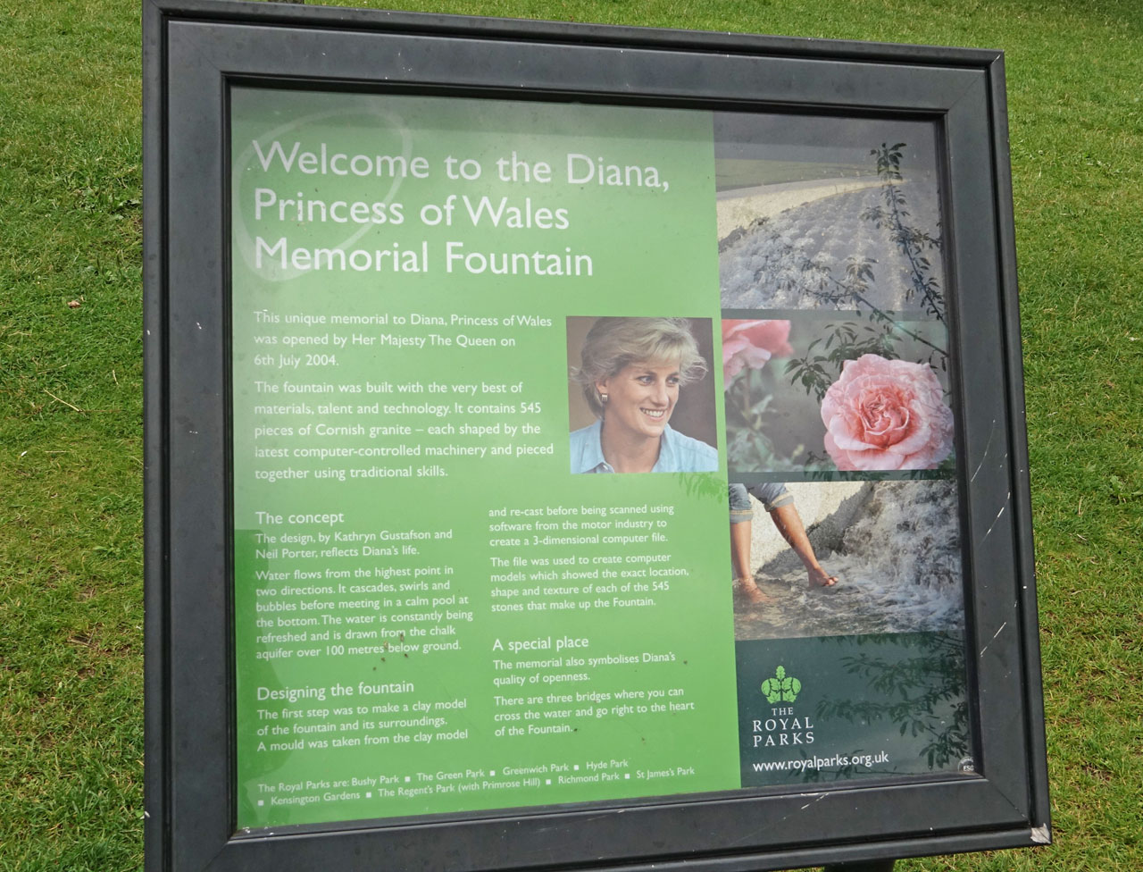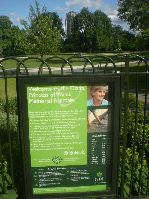 故ダイアナ妃の写真と共に、噴水の説明がされています