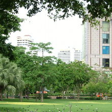 BTS「プロンポン」駅の前の公園。インペリアル・クイーンズ・パークホテルの宿泊者はこの公園を通り抜け(夜9時で閉園)が駅ま... 続きを読むでの近道です。