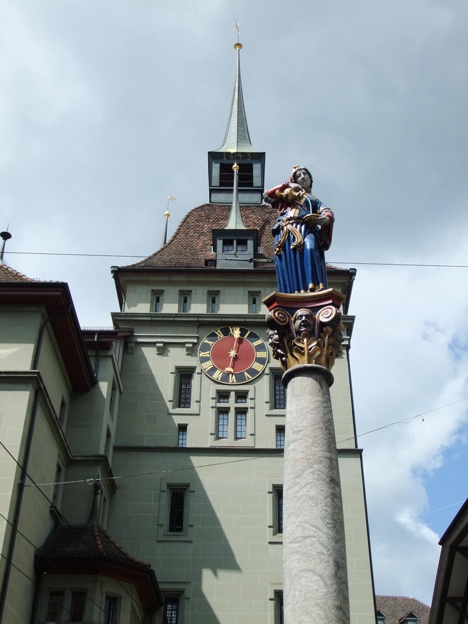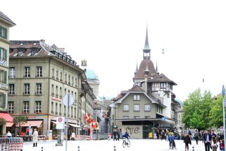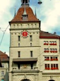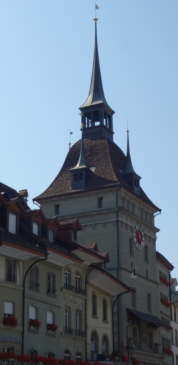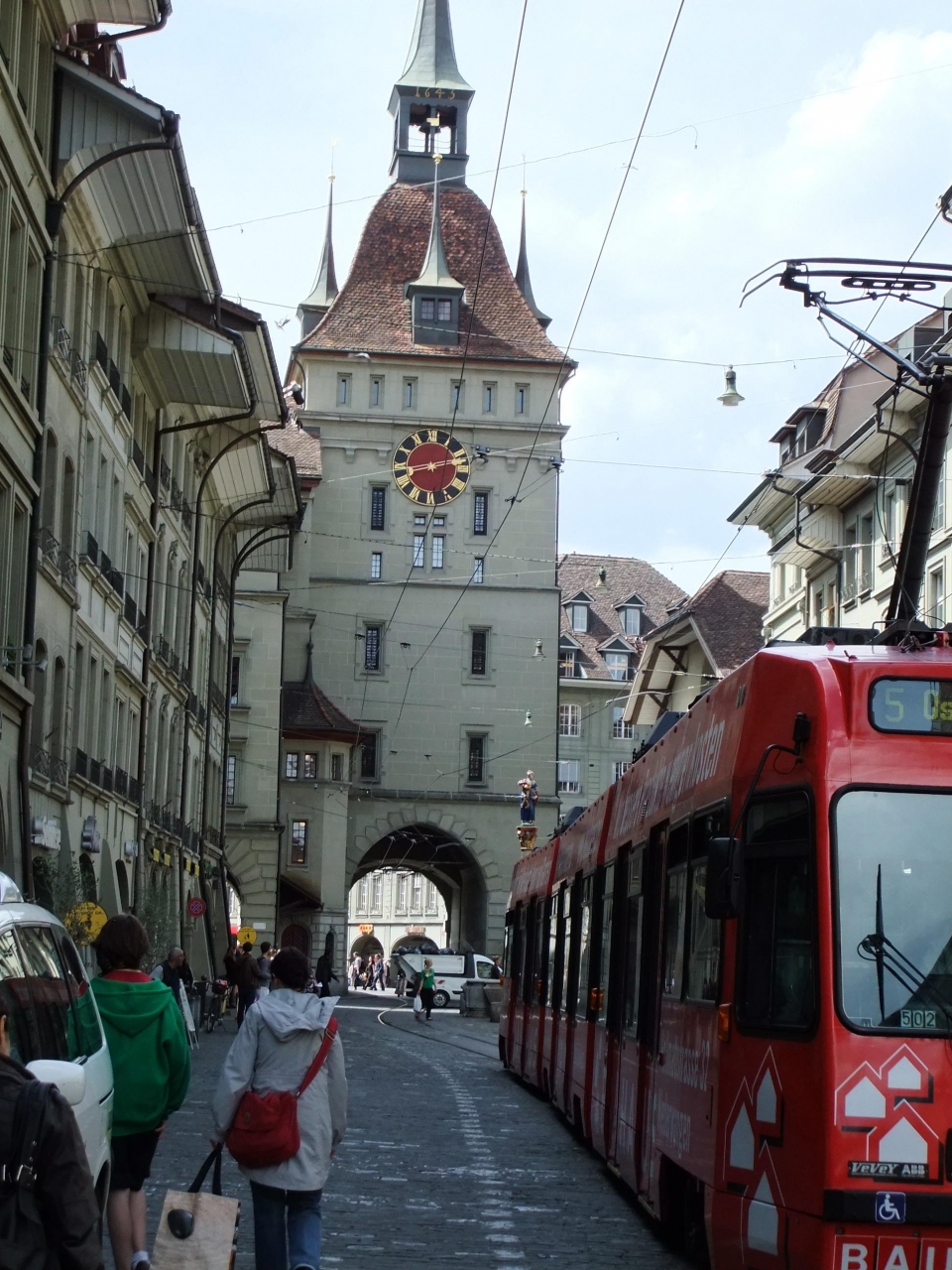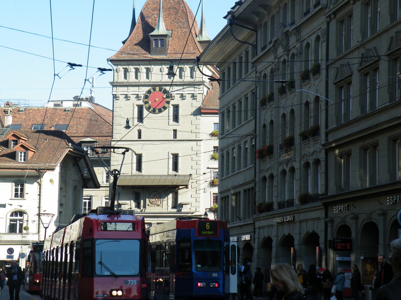 ベルン美術館を出て左側へ道をぶらぶら歩くと、すぐに大きな広場に出ました。とっつきに芝生のある美しい建物がありました。なにな... 続きを読むに?警察署かいっ!ベルンは警察の建物まで写真映えする街です。とはいえ警察ですからお世話にならないよう背中を向けると、広場の奥に見えるのはあれは連邦議会のようですね。なかなか荘厳な建物です。するとその手前の左側にあるとんがった屋根の建物が有名な時計塔でしょうか。なにせ広場のランドマークのような建物なんです。トラムが視界の中を左右に横切ってゆきます。よし行ってみよう…と思ったら、そこは牢獄塔でした。確かに壁面積の割には窓がずいぶん小さいものね。塔の足元はアーチになっていて、その中をトラムの線路が続いてます。歴史のことは全く分かりませんが、あの警察で取り調べを受けて、しかるのちこの牢獄塔に叩き込まれるってわけか、電車の音がうるさくて昼寝はできそうもないなあ、などと納得しました。