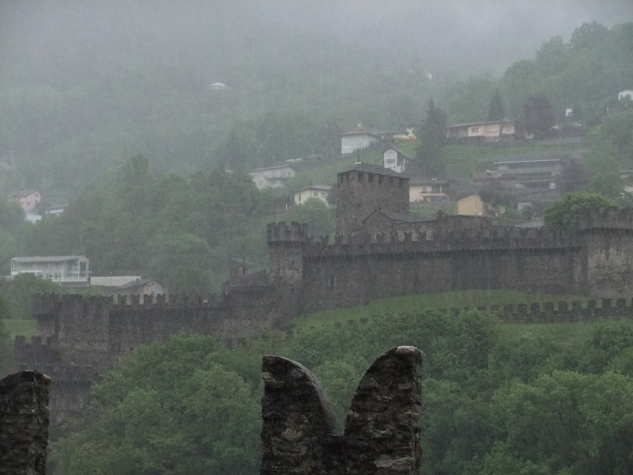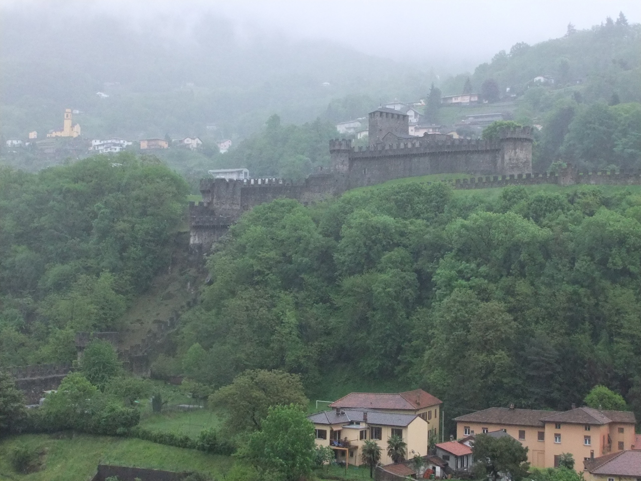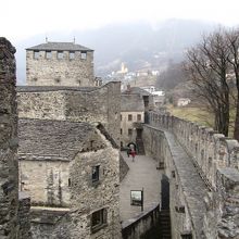 ベリンツォーナの世界遺産 三つの古城のうち上から2番目のモンテベッロ城。