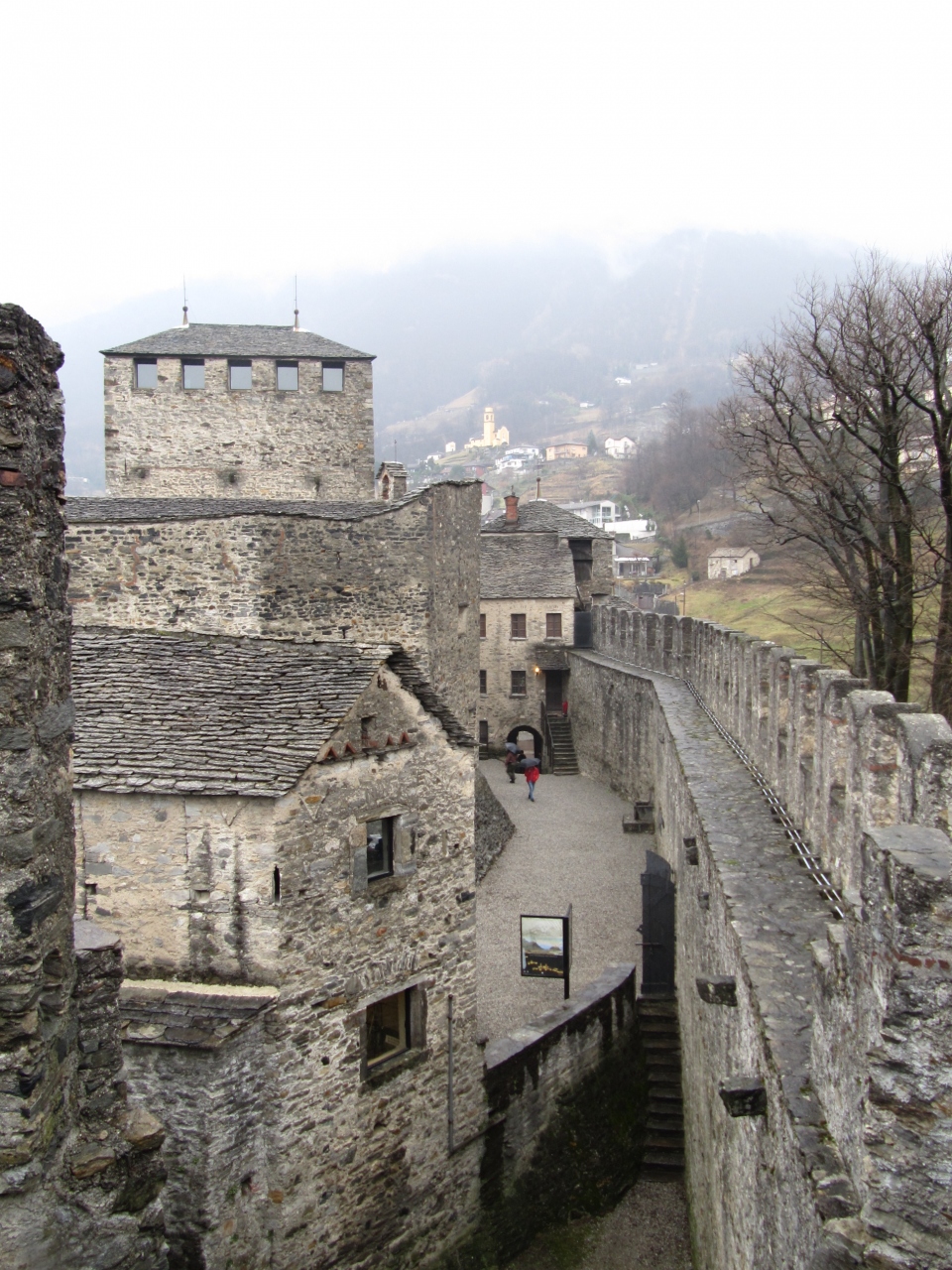 下へ見下ろすとベリンツォーナの旧市街とカステル・グランデ城。