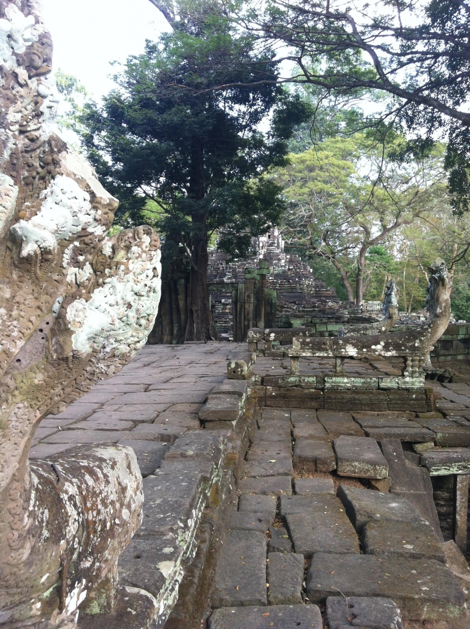 アンコールトムで人気がある場所はバイヨンやバプーオン、象のテラスですが、この付近は道路から西側にあることもあり観光客は極めて少ないようです。