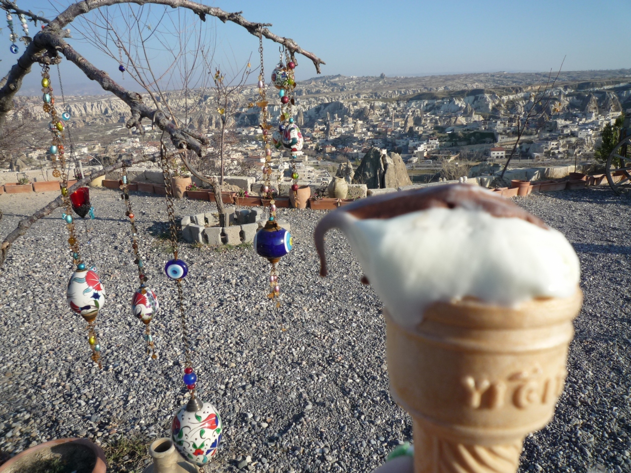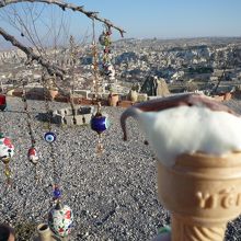 白い岩が連なり作り出す美しい景色と名物トルコアイス