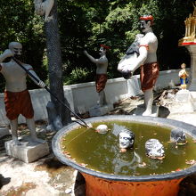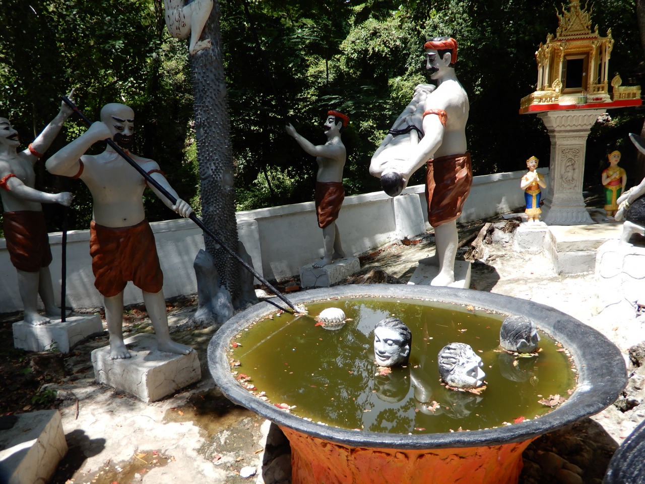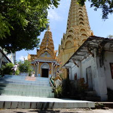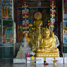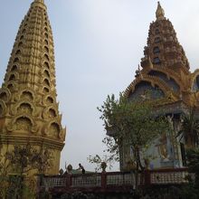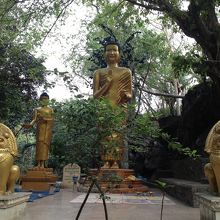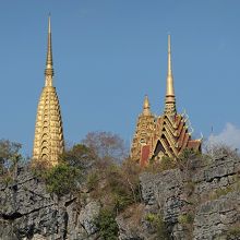 約1200段ある階段の途中には、涅槃仏や金色の大きな仏像、有名なワニ山やアヒル山を眺めるビュースポットがあります。