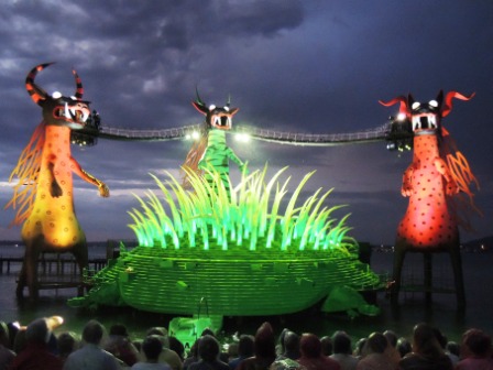 湖の上に舞台セットがあるという、とても珍しいオペラです。