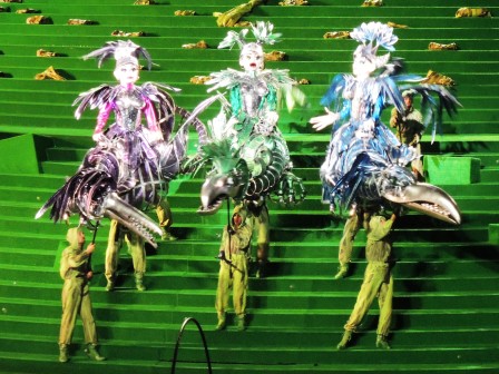湖の上をボートに乗って役者が登場したり、舞台が回転して全く違う場面になったり。