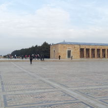 ツアーバスを降りると見えて来たのは、アタチュルク霊廟のある広場へと続く大きなまっすぐに開けた通りに出くわします。その道の両側にライオンや人物の石像が点々と配されていました。そこを抜けると大きな四角い霊廟とその前にあるとても広い大広場とか回りに細長く位置する展示室等がありました。霊廟の中は金色に光る天井や彫刻を施された壁が厳かな印象を与えます。アタチュルクの墓石はその建物の一番奥にあり花が飾ってありました。少し小高い丘に建っていて大広場からはアンカラの街がよく見渡せました。 閉じる投稿日:2012/07/02