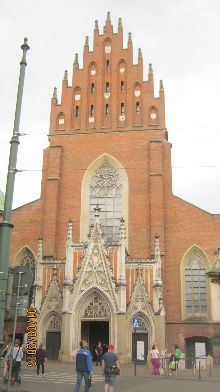 【クラクフ旧市街】を散策した際、へそとも言える【中央広場】からグラズカ通りを南に進み、路面電車の走る通りを左手(東側)に1... 続きを読むブロック進んだ場所にある【ドミニカン修道院】にも立ち寄りました。フランドル地方の教会を彷彿とさせる茶色のレンガの外観とファサード上部の構造が非常に特徴的でした。また、入口上部の装飾もゴシック風で興味深く感じられました。内部に入ると静かにお祈りをしておられる方もおられ、静かに見学させてもらいました。 閉じる