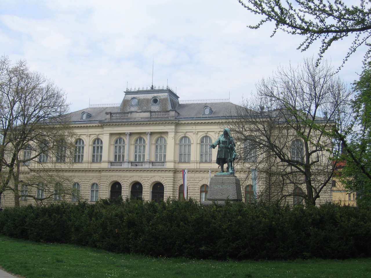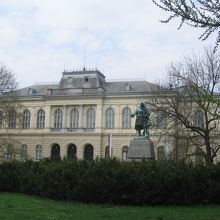 緑地を前にしたクリーム色の外観が爽やかな国立公園