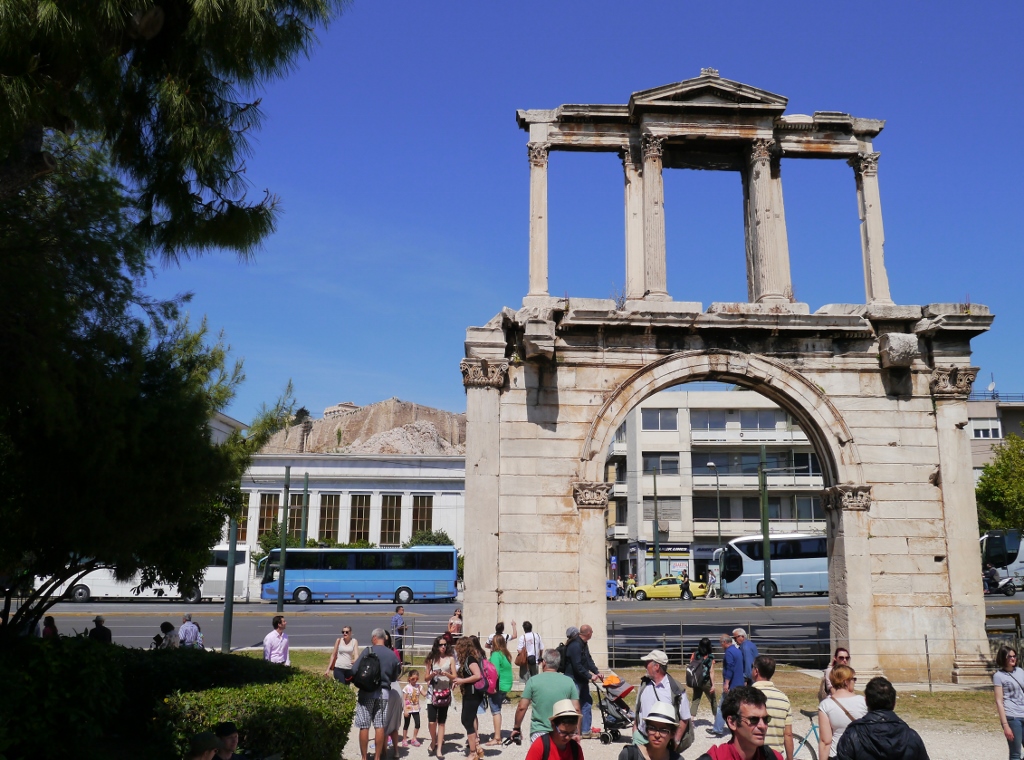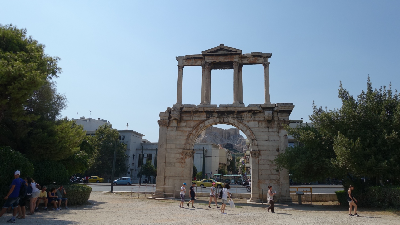 門からアクアポリスを眺める!/アドリアヌス門