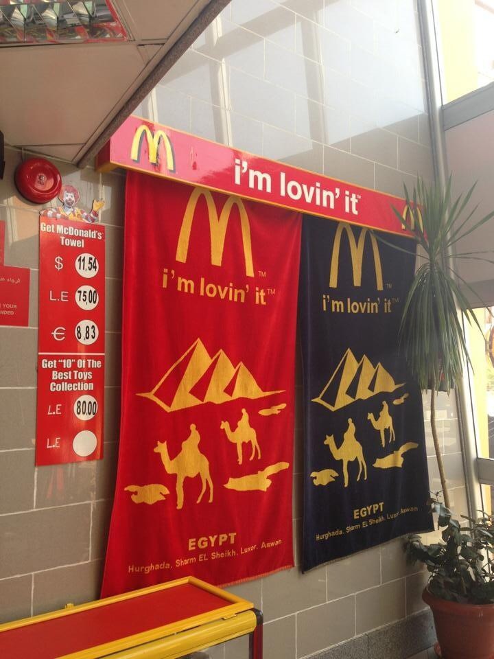 ルクソールのマクドナルドでエジプト限定のバスタオルが売っていました