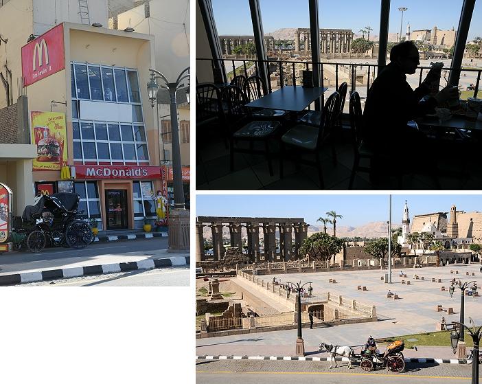 ルクソール神殿の直ぐ側にあり、2階以上の席からは素晴らしい眺めが楽しめます。 ワンフロアあたりの面積は狭いですが、4... 続きを読む階まで座席があるので、座れないことはなさそうでした。 オーダーはKIOSKかカウンターで。英語通じ、クレジットカードも対応。店内食ならテーブルまで持ってきてくれます。 ビックマックのLのセットにチンサンドを頼んで185ポンド。日本よりも安く、なぜだか感動。 店員さんが多くいて、テーブルの清掃も頻繁にしております、ものすごく印象が良かったです。 客層は、観光客と地元民が半分ずつという感じでした。 エジプト料理にあきて、値段交渉にもあきた場合は、ぜひともオススメのお店です。 閉じる