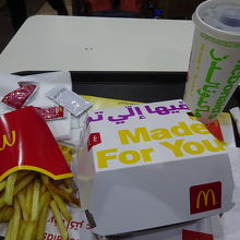 ポテトSとソフト・ドリンクSを付けたセットは、10%の税込みで19.54エジプト・ポンド。ポテトとソフト・ドリンクをLにしたセットだと、税込みで23.18エジプト・ポンドだったと思います。