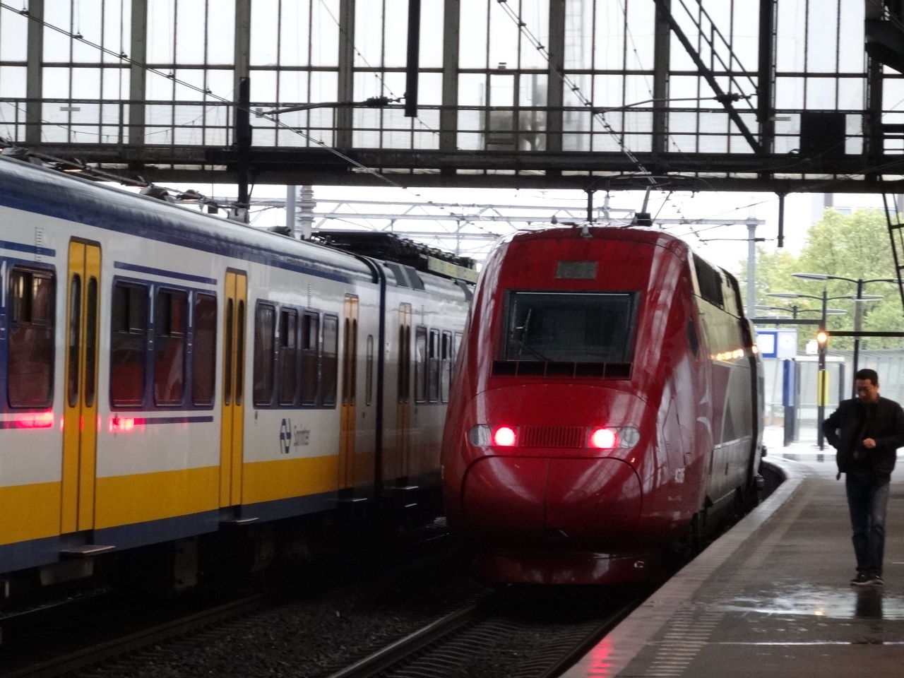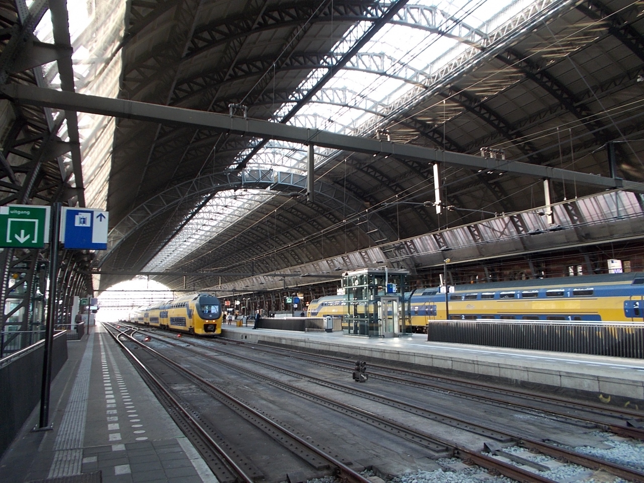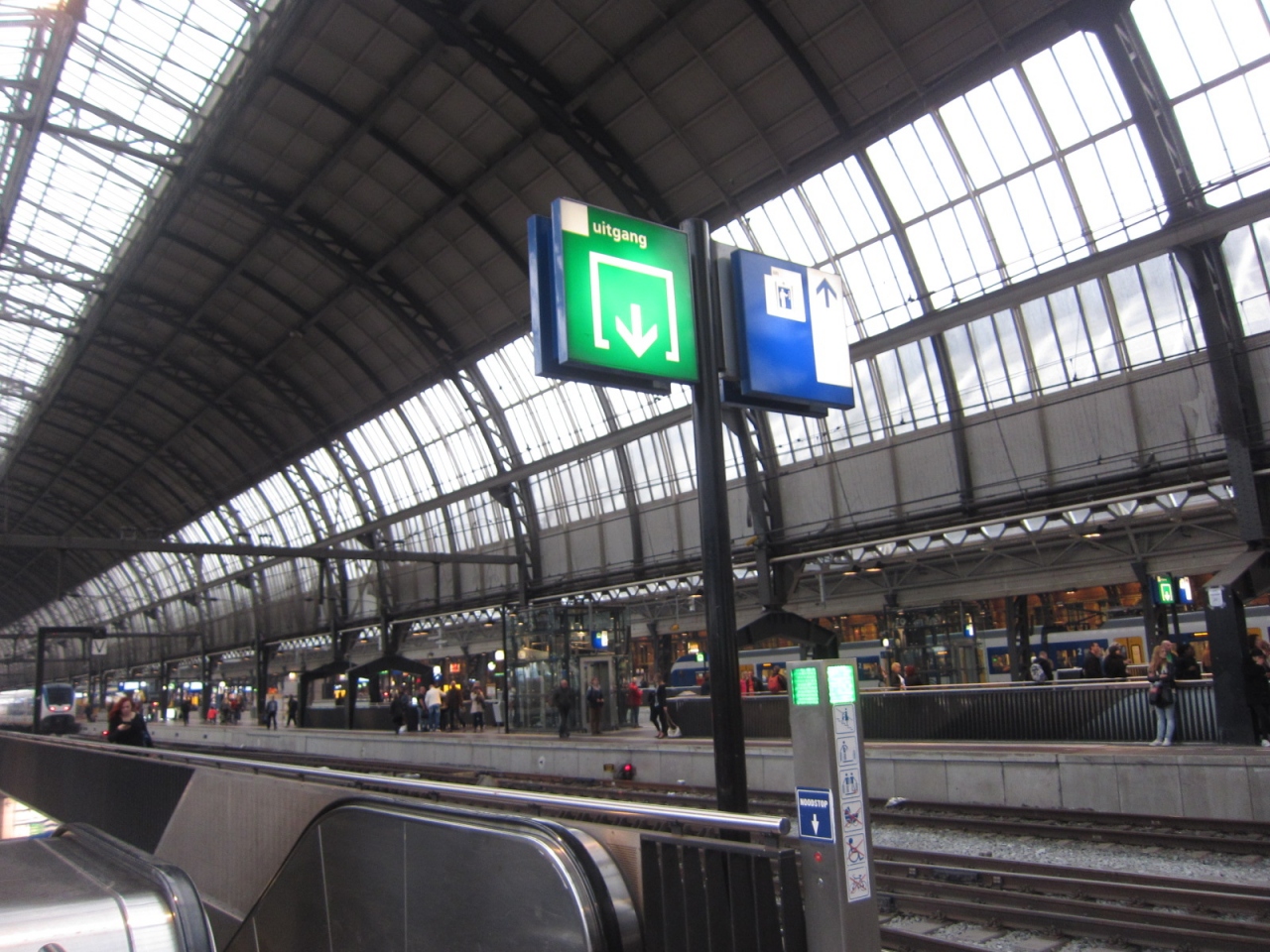 乗り場は行き先によって入る入り口が分かれており(中は繋がっているようで一番近い入り口を案内してくれています)、少し分かりづらいですが、スキポール空港行きの案内板は飛行機マークがついていて分かりやすいです。チケットは通路にある自動販売機で購入できます。クレジットカードが使えますが、現金より0.5?だったか高く設定されています。現金の場合は硬貨のみの扱いです。
