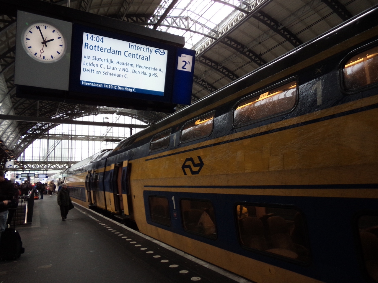 スキポール空港からは、直結しているスキポール空港駅から15分前後。日中は10分間隔、深夜-早朝は1時間間隔で運行されており、空港からすぐに乗れ、速くてリーズナブル(片道5,3ユーロ)で便利です。