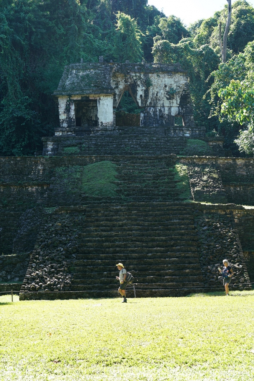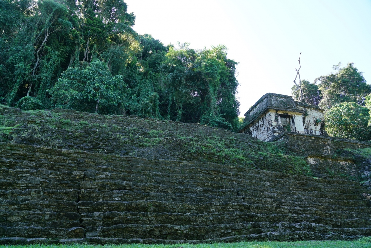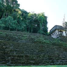 パレンケ遺跡の入口を入ると、最初に見えてくるのが神殿13と言われる3つの神殿のコンプレックス。