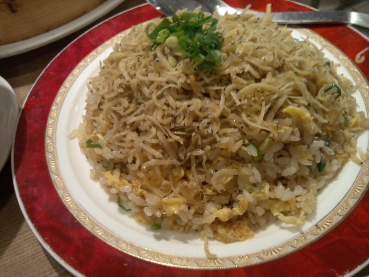 しらす炒飯。これって、大阪のジャコめし風の炒飯。家でもよくします。ふつーすぎ。これ以外に、お勧め、いや、選択肢は無いのでしょうか。