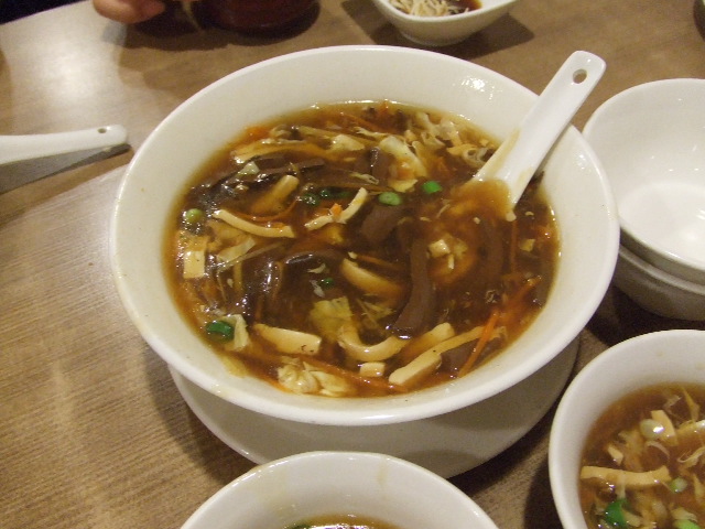 酸辣湯。豚の血の固まったのが入っていて、小ですが半分もいかずギブアップ。友人曰く、台北の酸辣湯はよくないとのことですが、台北空港の普通の酸辣湯は良好。