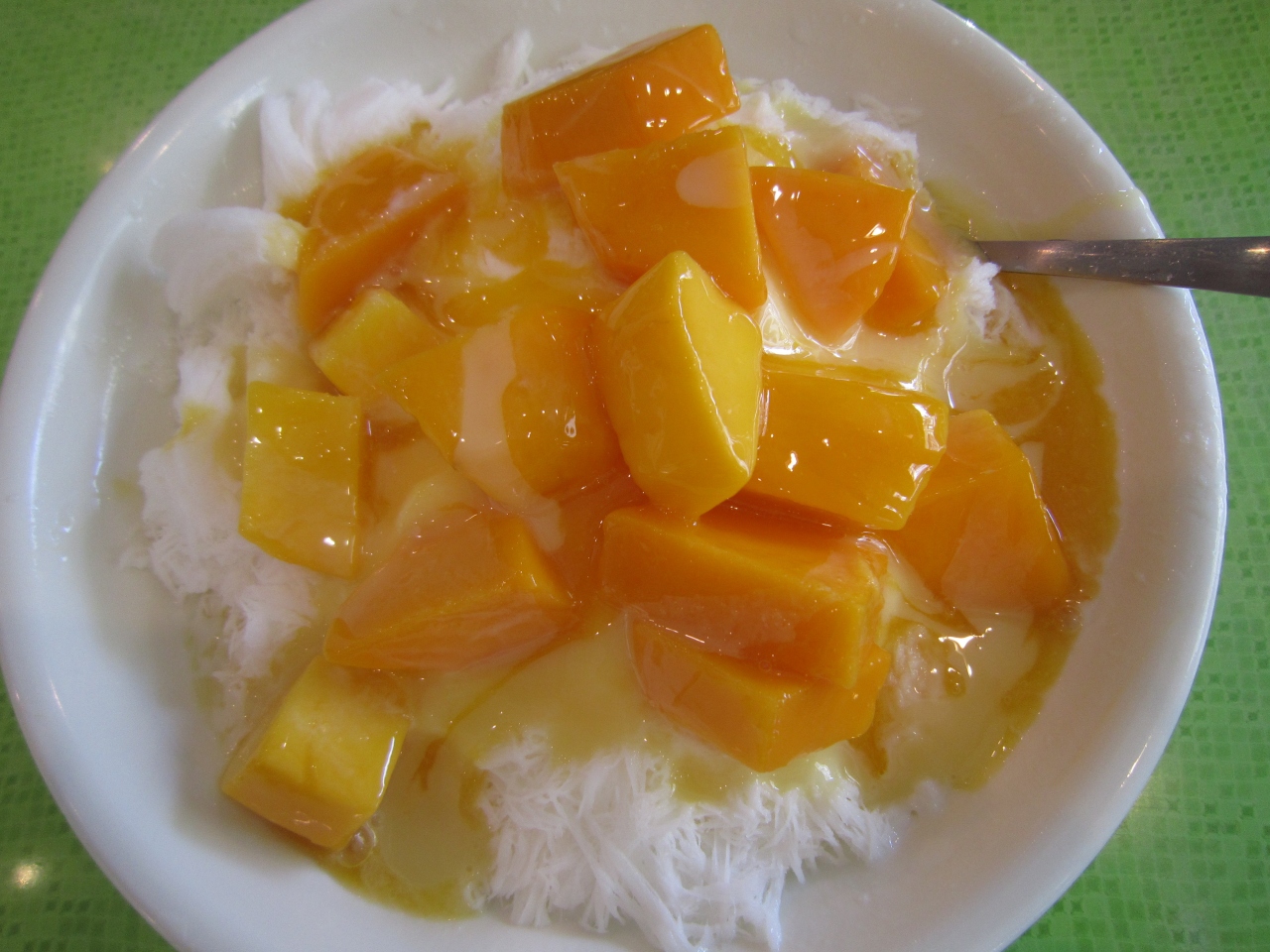 店員に注文するとすぐにマンゴーを剥いてカットしたマンゴーと、マンゴーソース、練乳もたっぷりで、氷が雪のようなさらさらで、おしいー!!って声が出てしまいました。結構ボリュームもあり、男性ならいいですが、女性だとちょっと多いので分け合えるといいかと思います。夜も遅く23時までやっているので食事の後やマッサージの後でもおいしく食べられると思いますよ。