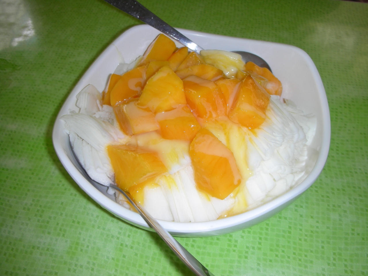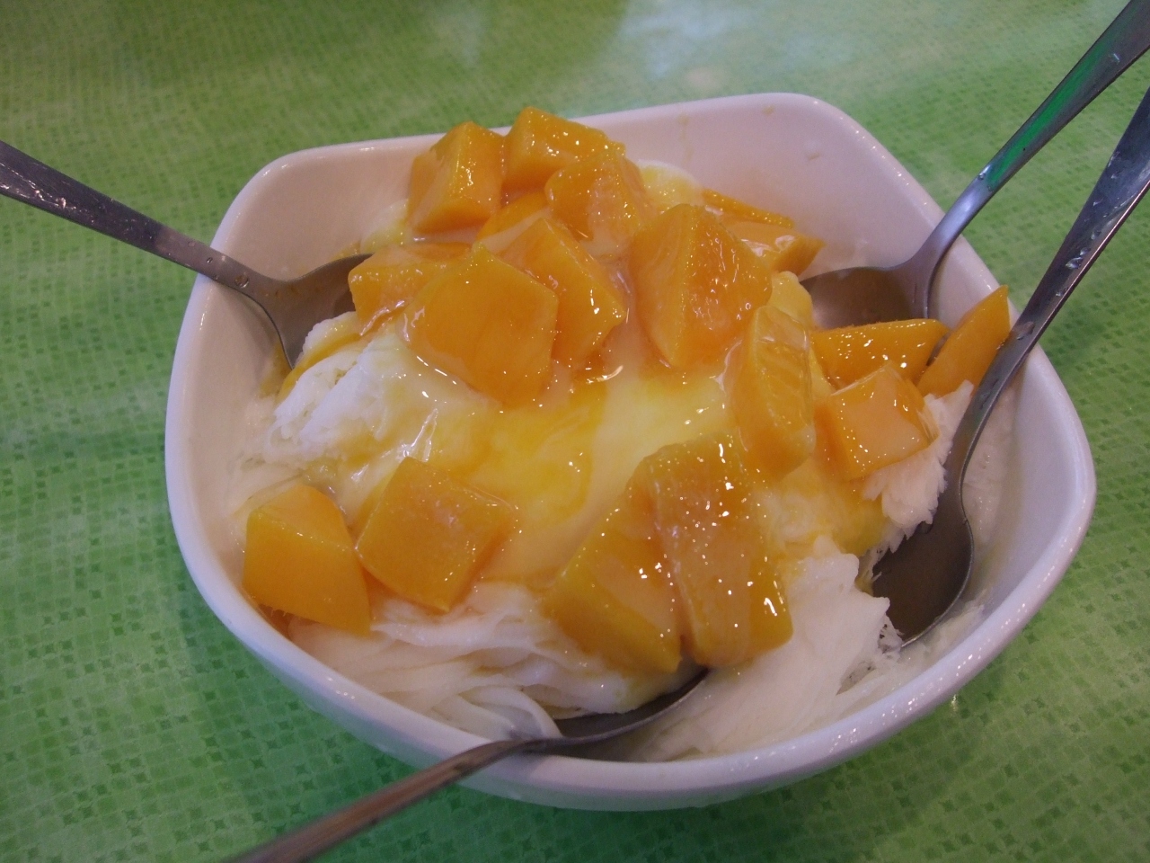 (... 続きを読む1)芒果雪花冰(マンゴ−ミルクかき氷) 90元(約243円)