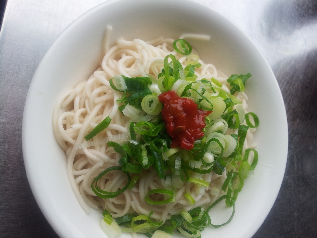 初めて行ったので、いきなり大は危険かな?と思い、中にしましたが大を頼んでも良かったな~と思いました。ねぎしか乗ってない非常にシンプルな麺ですが、茹で加減が絶妙でした。