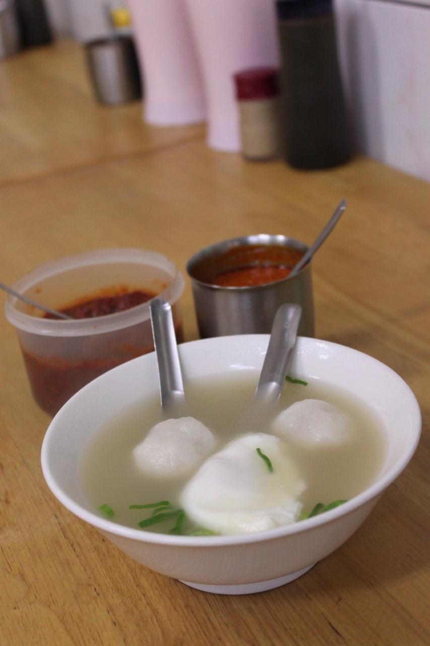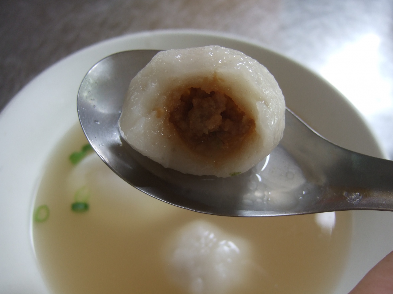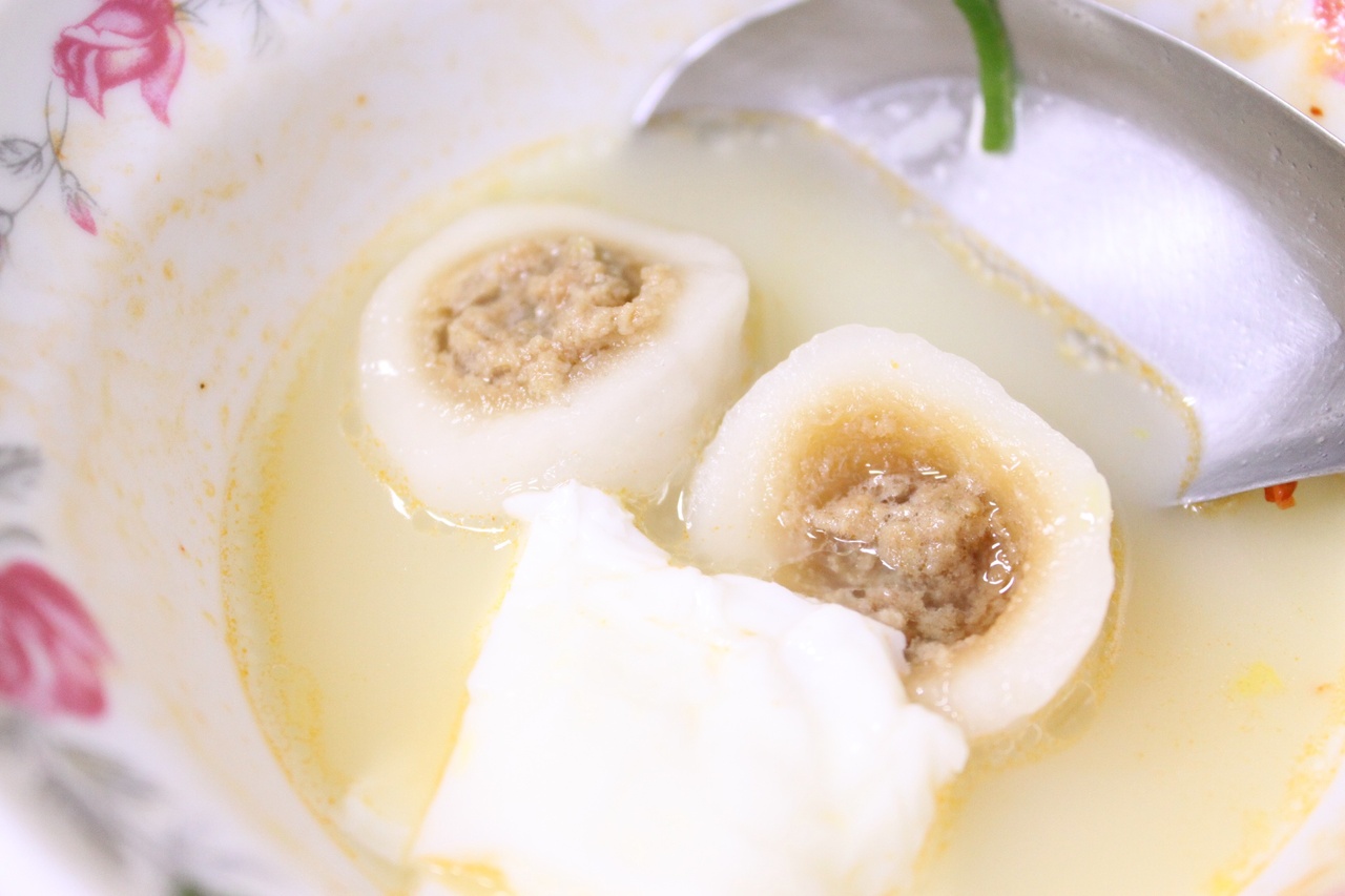 スープはかなりあっさりめなのですが、魚丸の中にしっかりとした味付けのお肉が入っているので崩して混ぜてもいいかも。スープにたまご(ポーチドエッグ)を入れても2NTDしか変わりません。たまご入り32NTD