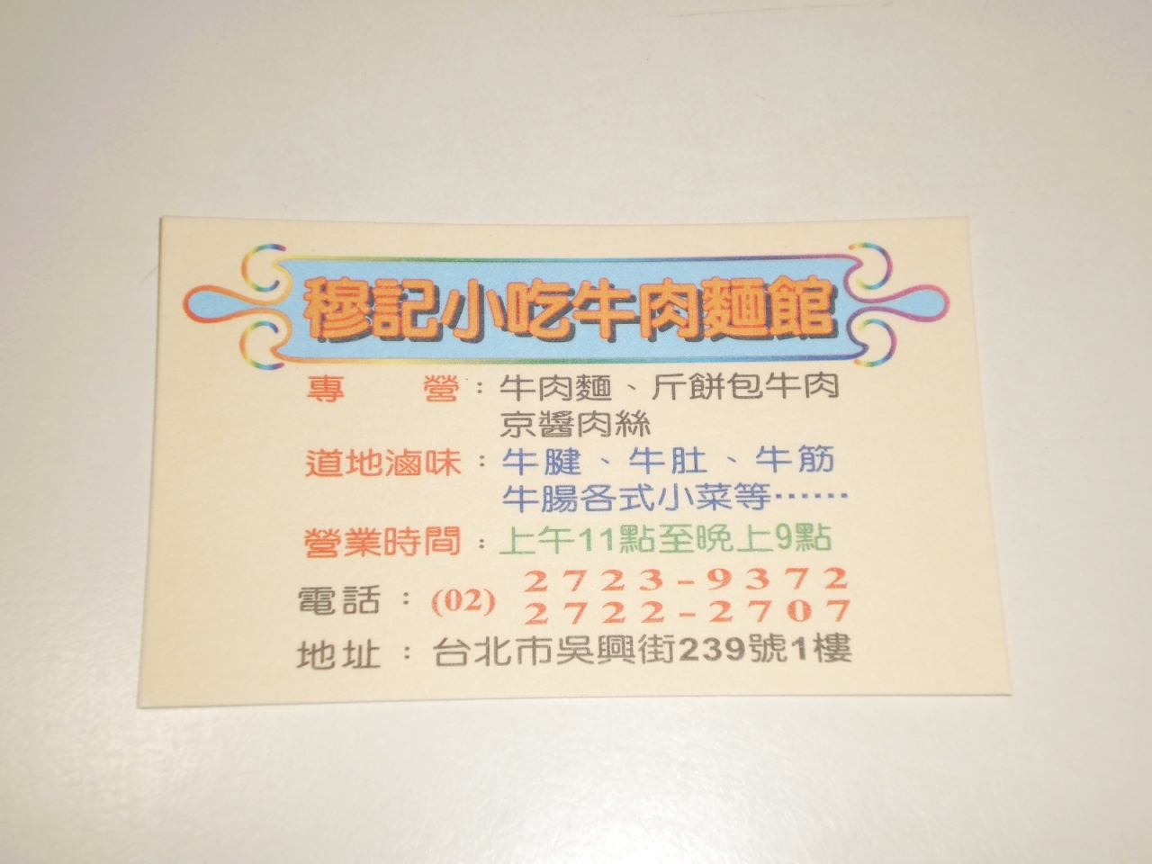 初め、御目当てのお店(台北市某有名牛肉麺店の父上様のお店)に行ったが、その時は、たまたま?閑古鳥。歩いてきた道に、店名は、... 続きを読む以前(臺灣牛肉麺節)から存じていたお店があり、そこそこ客の出入りがあり、入りました。紅焼牛肉麺(小碗)を頼んだが、さらに何か言っている?菜譜(メニュー)を見せて、家常麺、冬粉(緑豆春雨)、もう1種類(失念)から麺の種類を選択してくれと・・・。家常麺を指定、程なくして、運ばれてきたが、見るからに小碗。麺をすくうと煮込まれた牛肉が、幾重にもゴロゴロと入っていて、嬉しい限りであり、麺にも腰があり、すべてにおいしい。再訪したいお店です。 閉じる