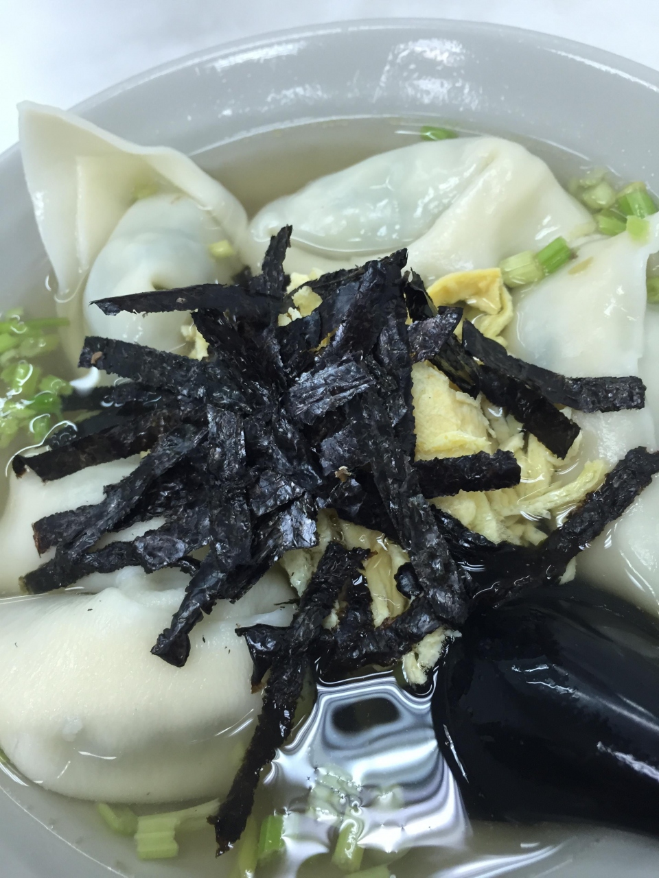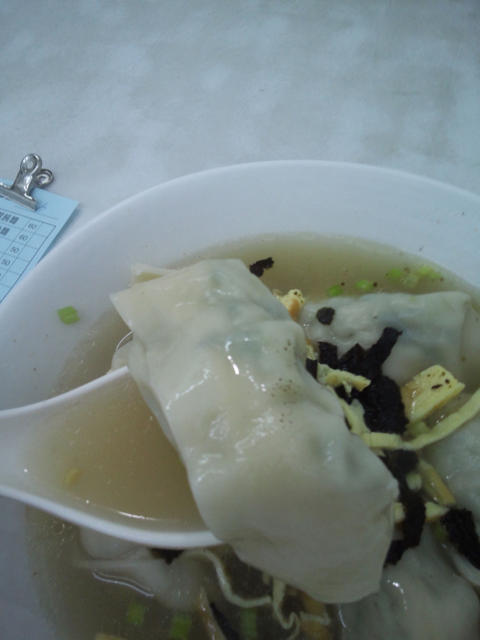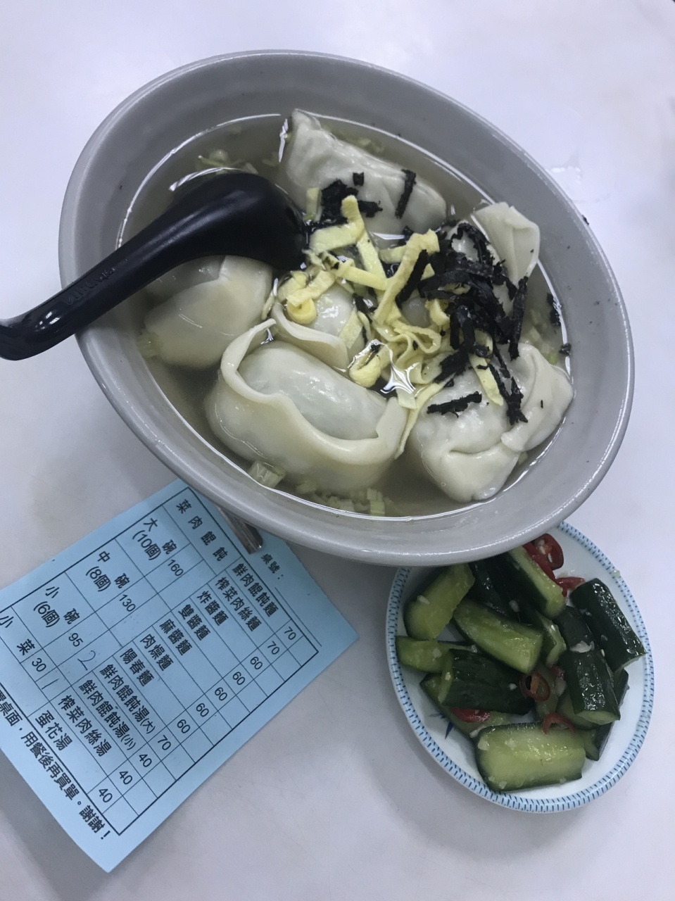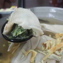 小碗(6個)を注文したら、椀には4個のワンタンしか入っておらず、あれれ???と思いましたが、食べ進めるのを見計らって残りを椀に足してくれるのです。