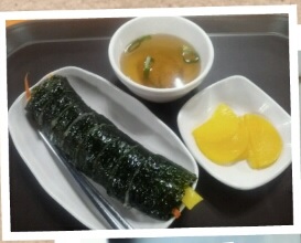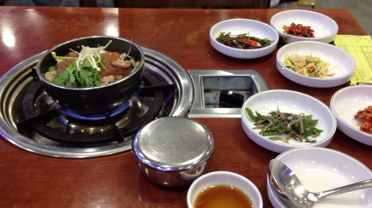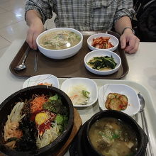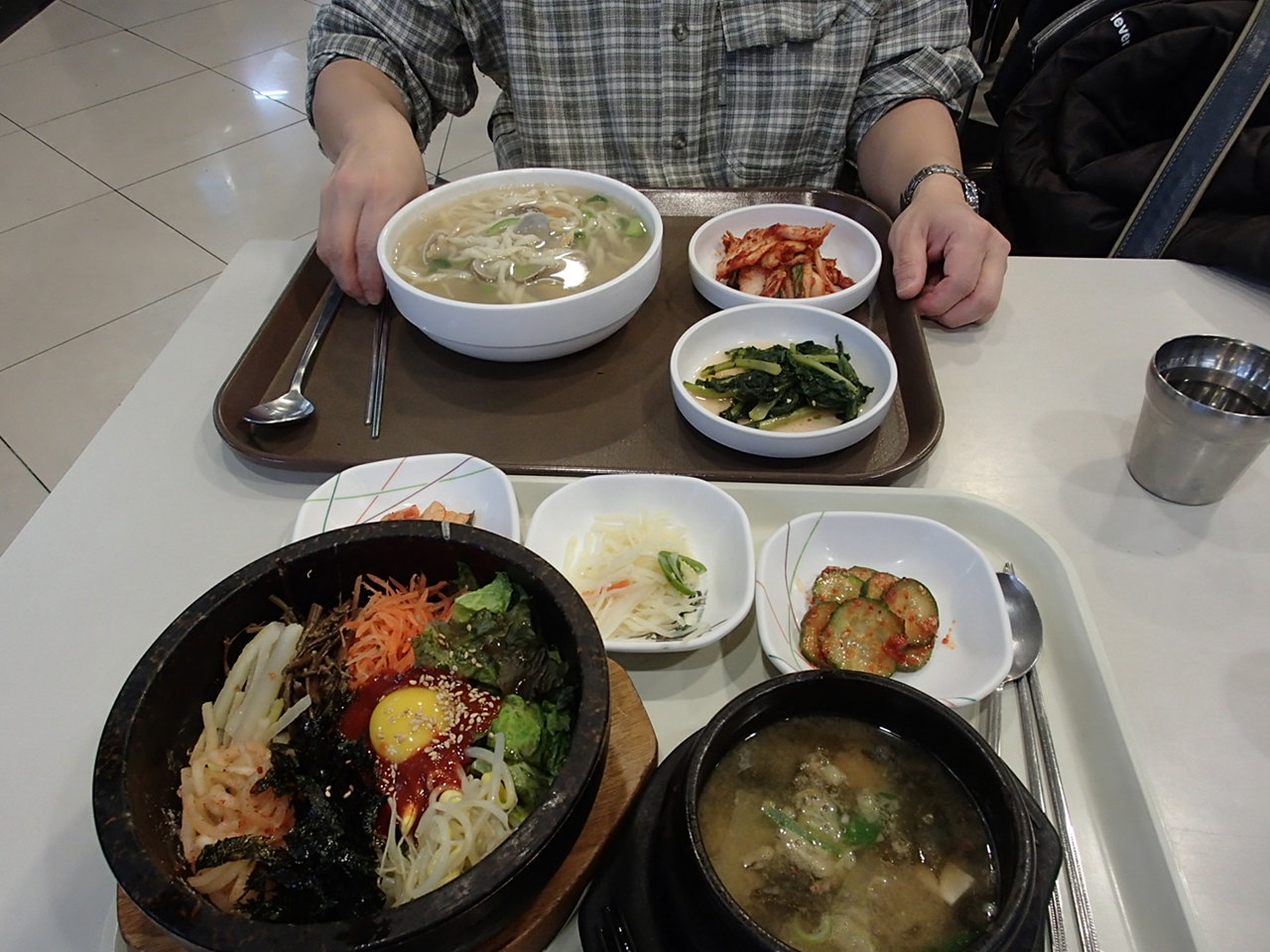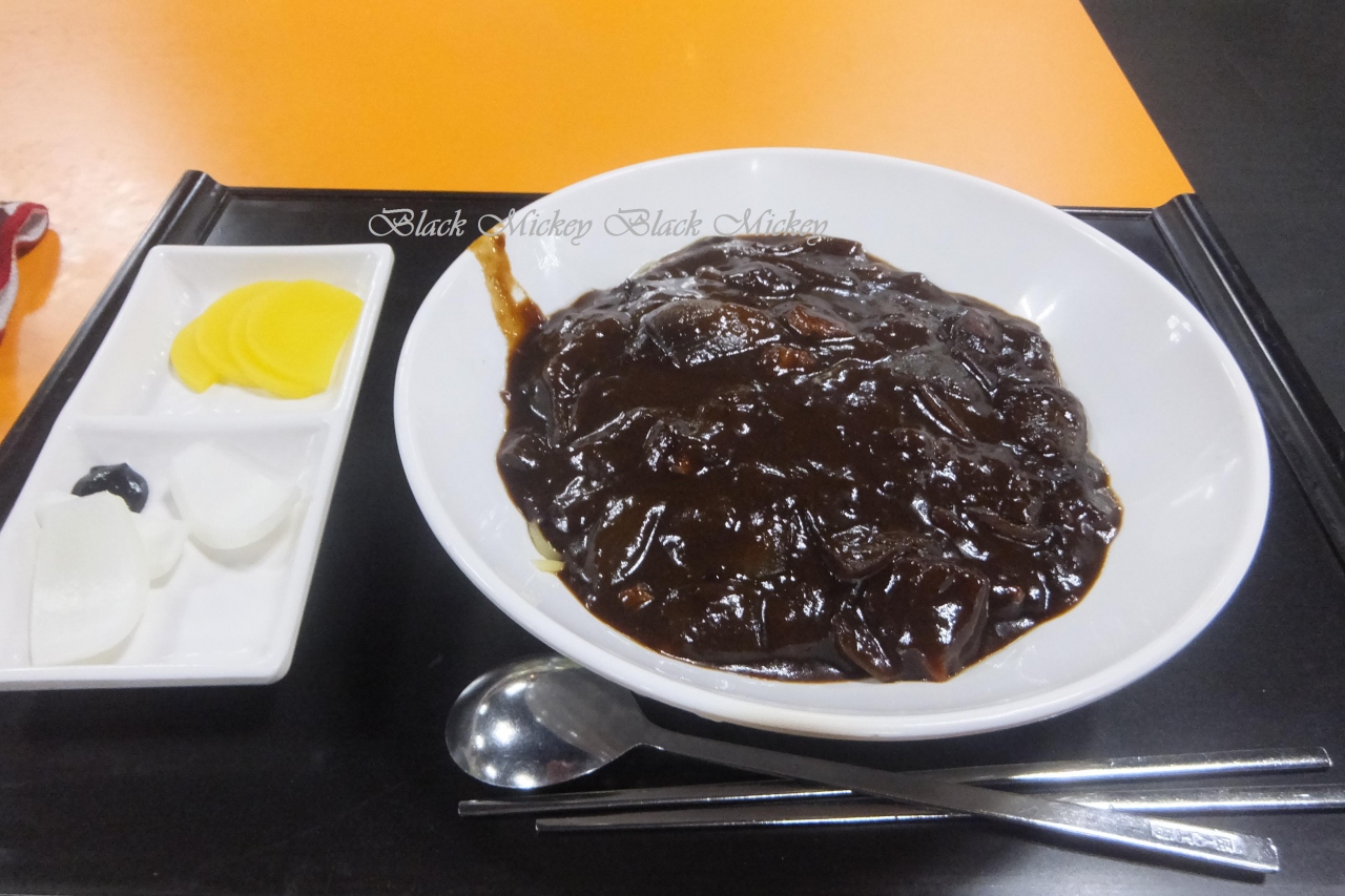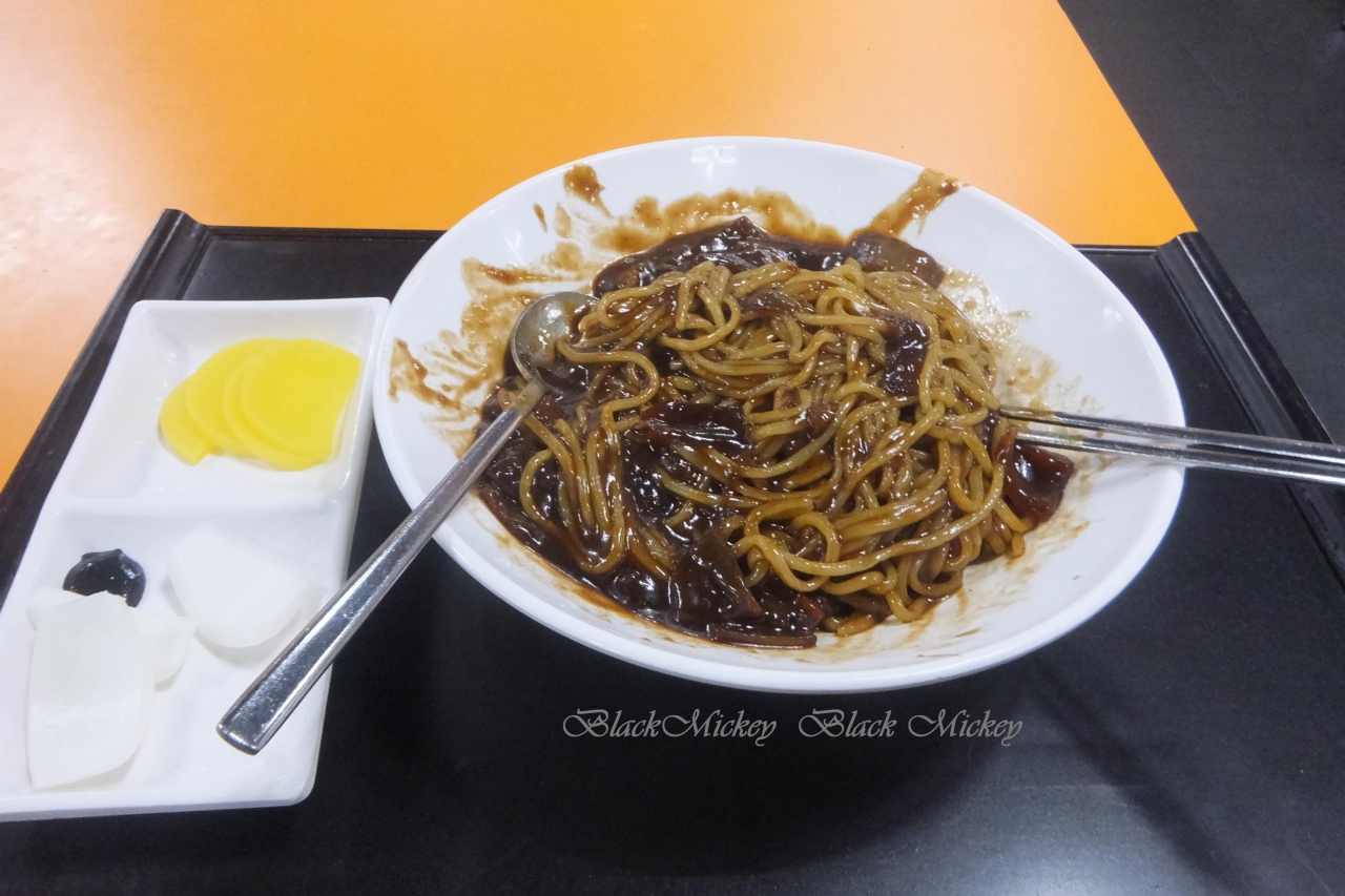 カップル麺」冷麺とビビン麺が半分ずつひとつの器に入っています
