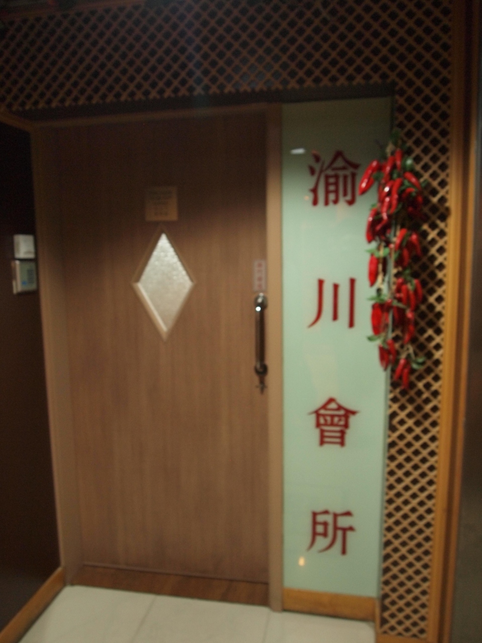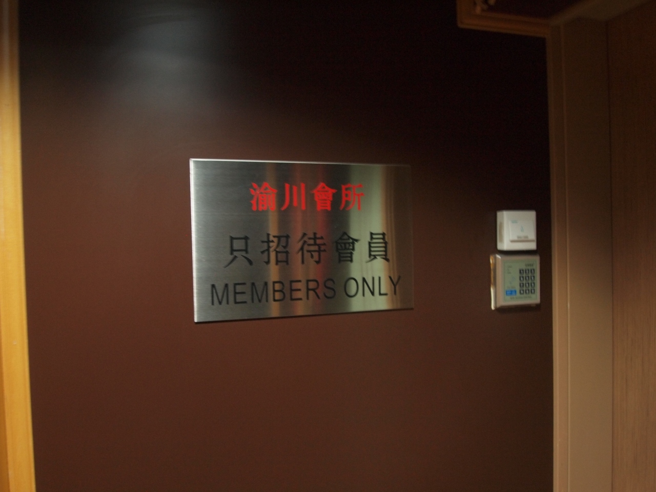 この「渝川菜館」もそんな「私房菜」の一つ。同じく私房菜の「四姐川菜」の姉妹店だそうだが、やはり入り口には「メンバーズ・オンリー」のプレートが。