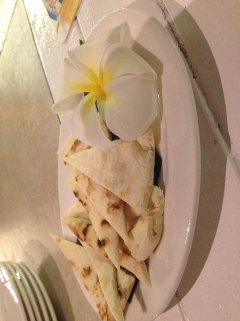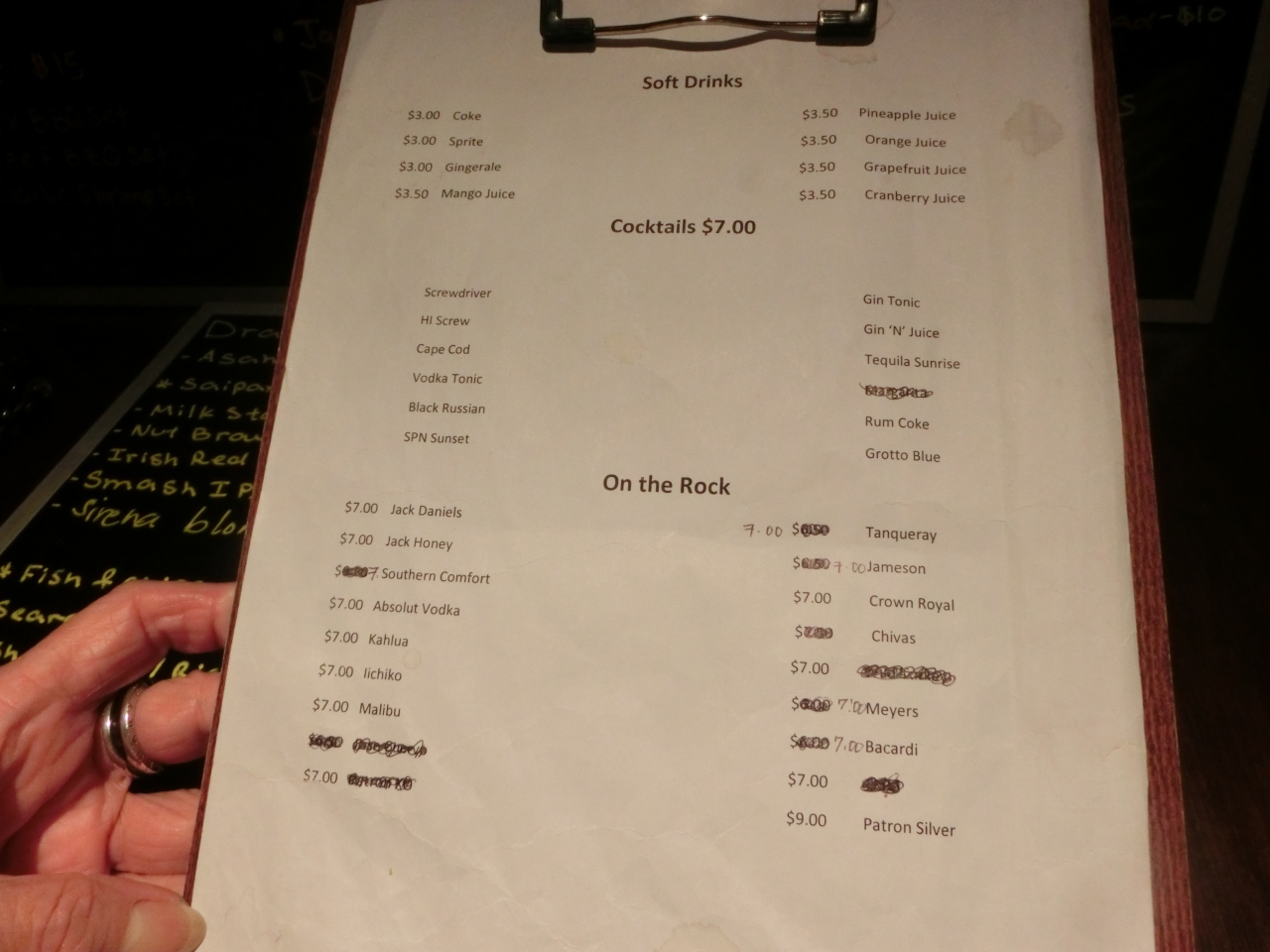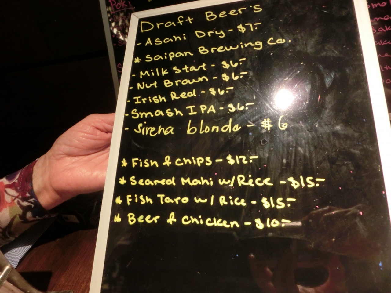 階段上がって二階、全体的にテラス席になっており、開放感抜群。(ただし、虫注意・・)肝心のお料理は、いろんなチャモロ料理があって迷っちゃいます。料理の名前だけだと??ですが、写真つきで、ちゃんと料理の説明も書いてあるので分かりやすい。