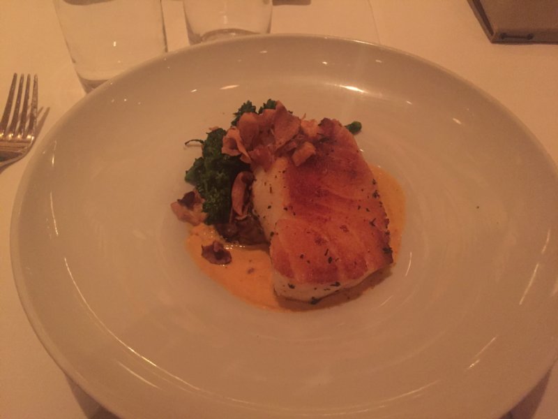 スペイン風の鱈(たら)。左に3種類のオリーブが写っている。