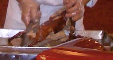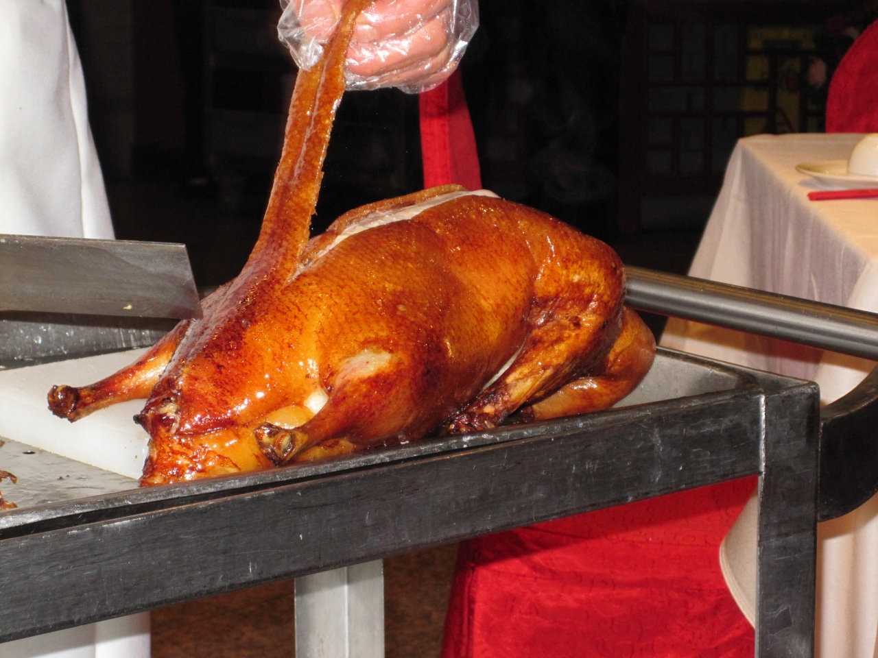 肝心の北京ダックがテーブルの横に来て、シェフが包丁を入れると、胃袋は