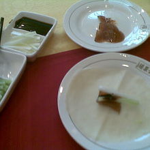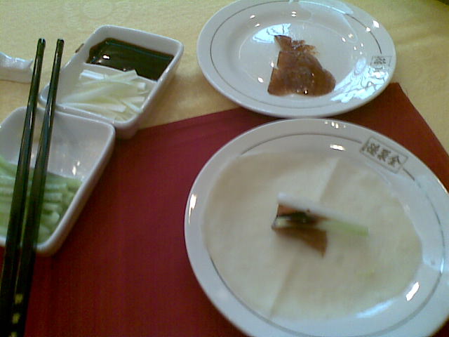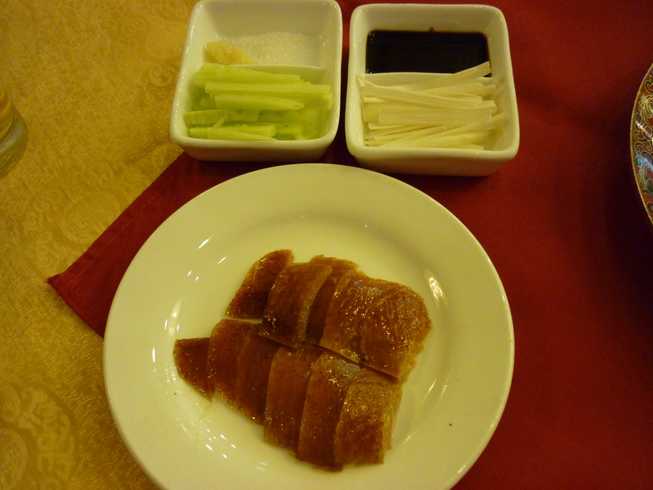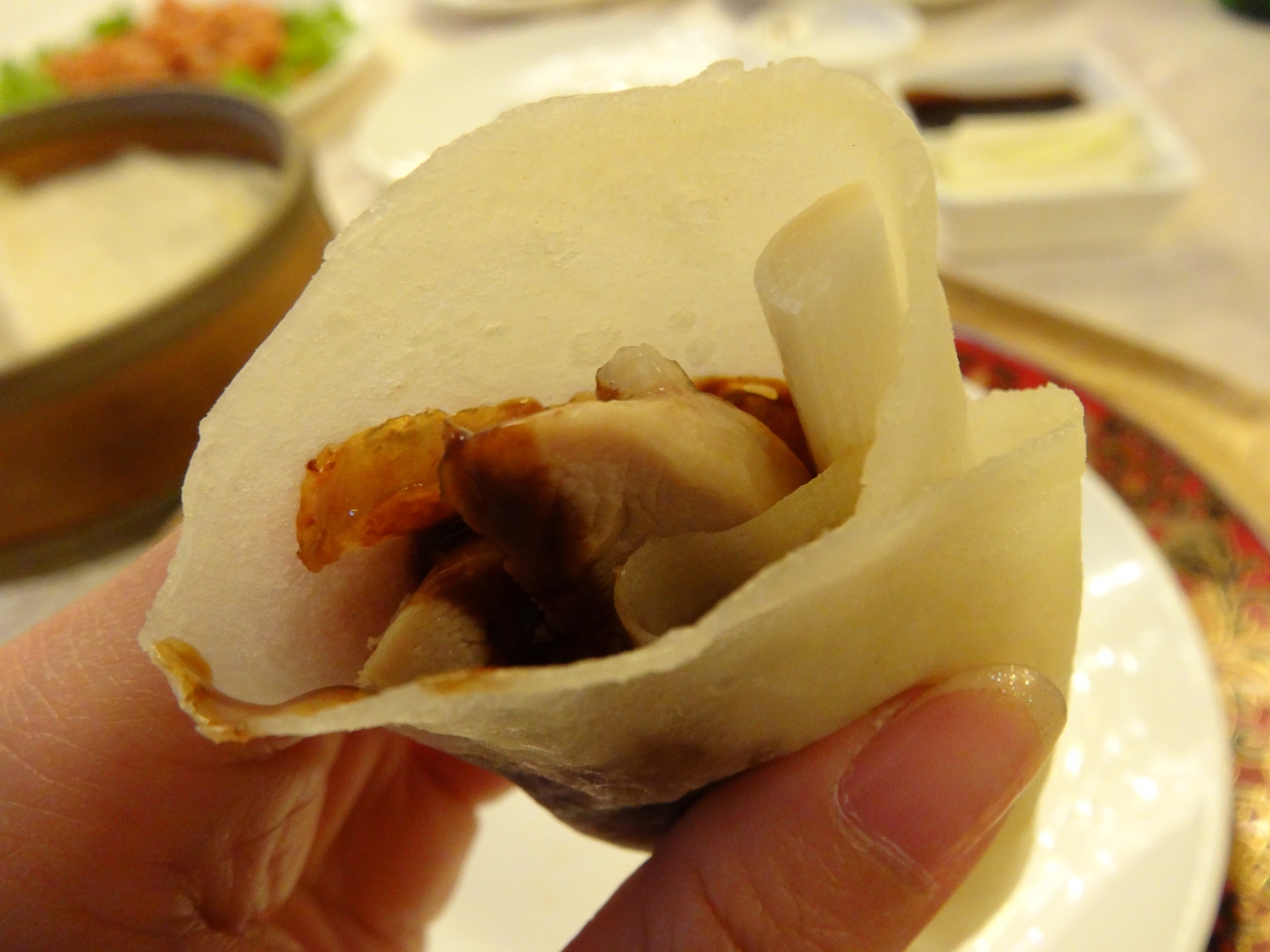 日本で食べる北京ダックと違い、本場では皮だけじゃなく肉の部分も一緒に食べるらしく、みそとネギを一緒に添えて食べる本場のダックは、香ばしくてとっても美味しかったです。